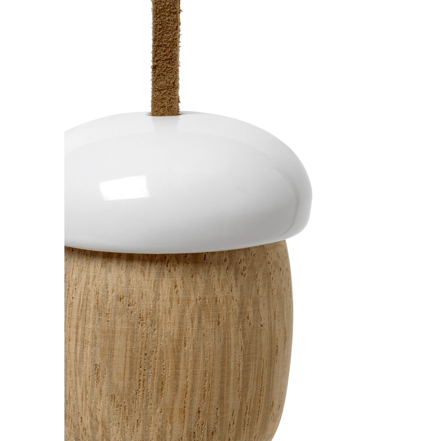 Acorn Ø4 cm de Rosendahl Design Group. Figura artesanal de roble natural y porcelana blanca, diseñada por Tools Design para la colección Forest Tales.