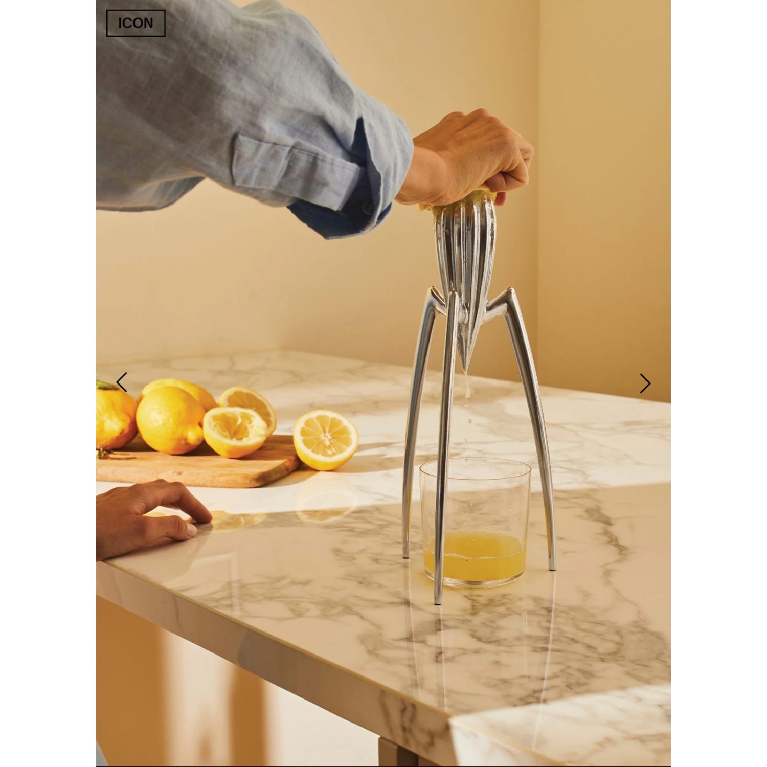Con 29 cm de altura y un diámetro de 14 cm, este exprimidor sorprende por su sencillez y su carácter innovador. Starck lo concibió de manera espontánea durante unas vacaciones en Italia, dibujando su silueta en la servilleta de una pizzería. Desde entonces, se ha mantenido como un objeto provocador, capaz de generar debate sobre el límite entre arte y funcionalidad.