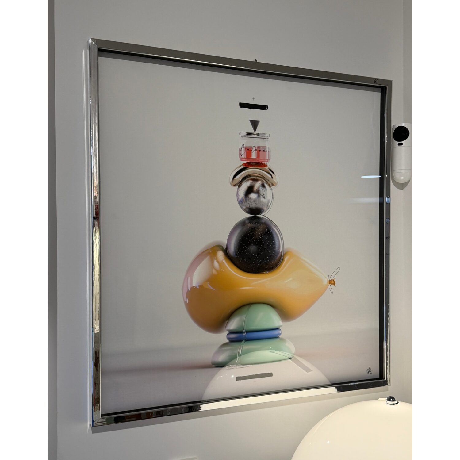 Balance Morearte, obra del artista multidisciplinar Morearte, es una composición única que fusiona escultura 3D, iluminación y texturas a mano con lápiz y acrílico sobre lienzo.