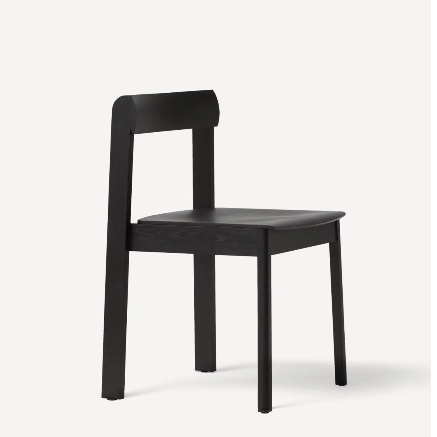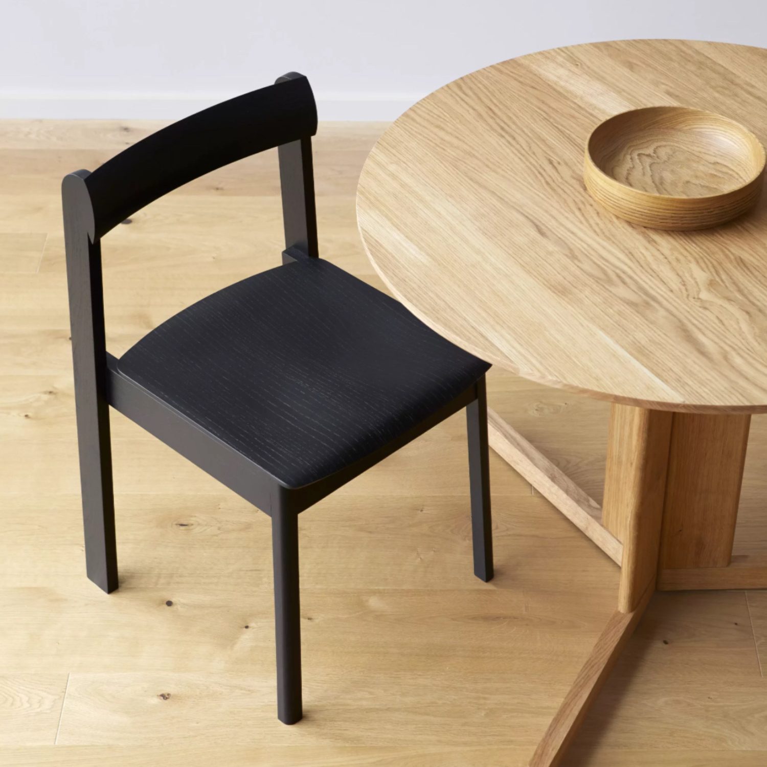 La Blueprint Chair de Jonas Herman para Form & Refine, fabricada en roble macizo europeo certificado FSC® con acabado en negro lacado, combina diseño orgánico, ergonomía y ligereza en una pieza atemporal.