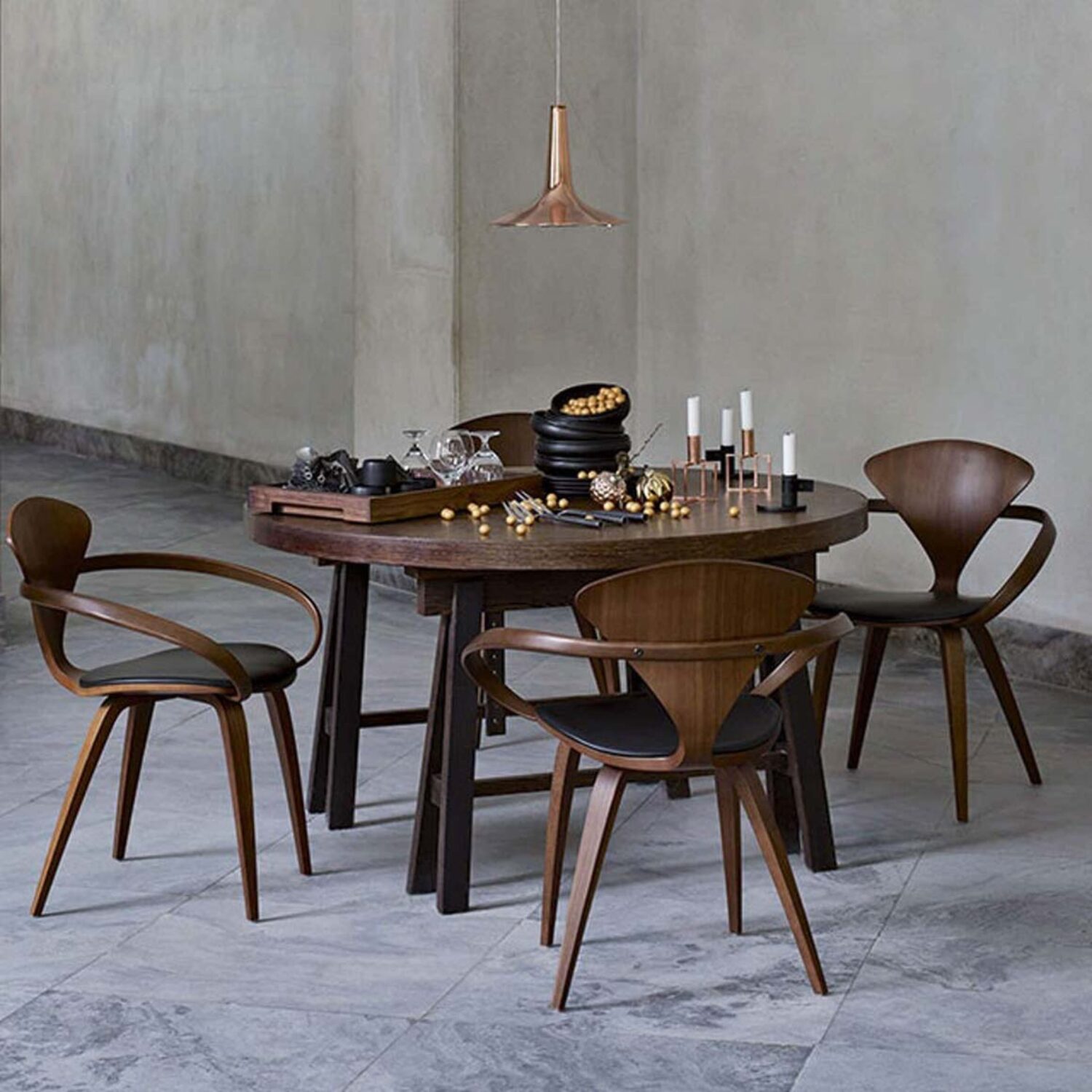 Gracias a su diseño envolvente y a su presencia equilibrada, la Cherner Armchair se integra con naturalidad en espacios domésticos y profesionales. Es ideal para comedores, despachos o zonas donde se busca una pieza con identidad y carácter.
