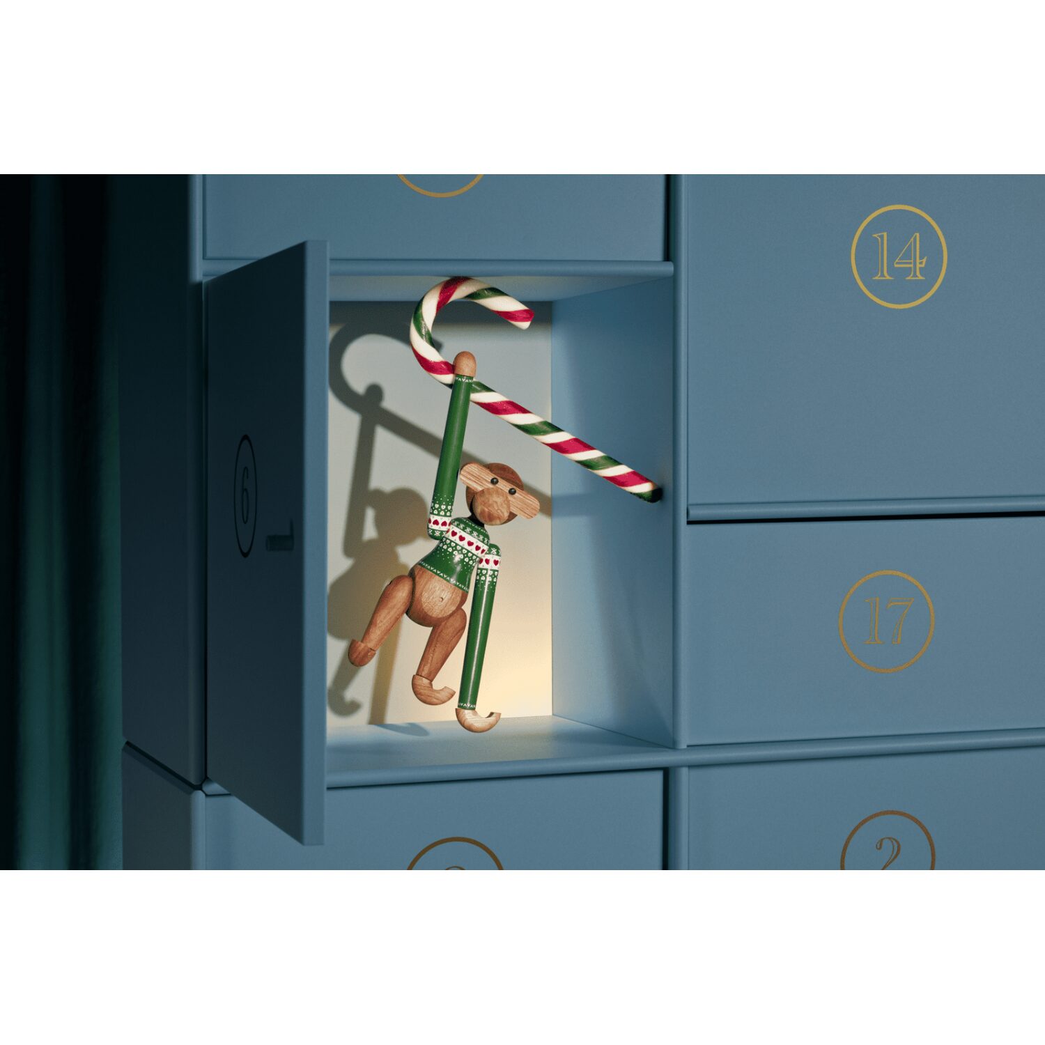 En esta edición especial, el icónico mono de Bojesen viste un suéter verde con un clásico patrón navideño en blanco y rojo, símbolo del encanto y el humor que caracterizan al diseño nórdico desde 1922.