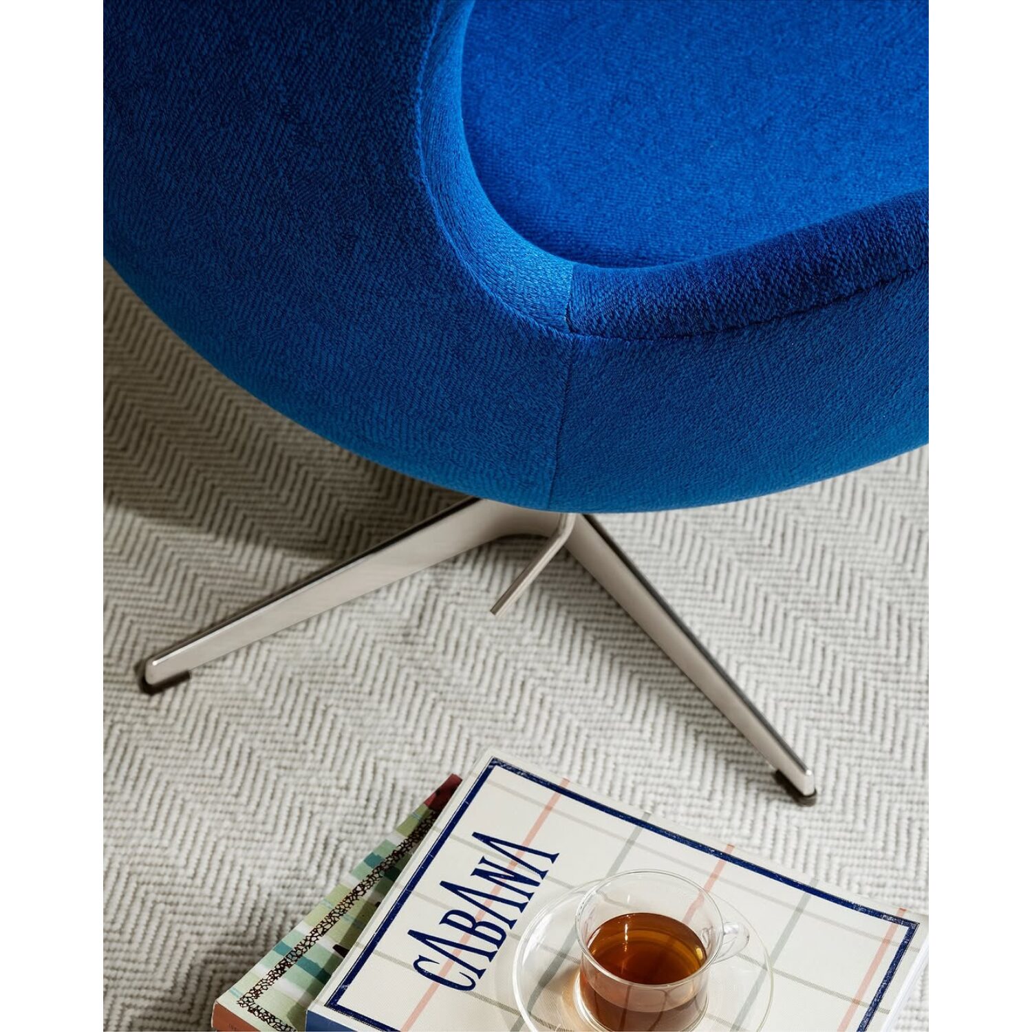 La Egg™ Lounge Chair Azul refleja esa filosofía a la perfección: una pieza que trasciende el mobiliario para convertirse en una escultura habitable, equilibrando confort, innovación y belleza atemporal.
