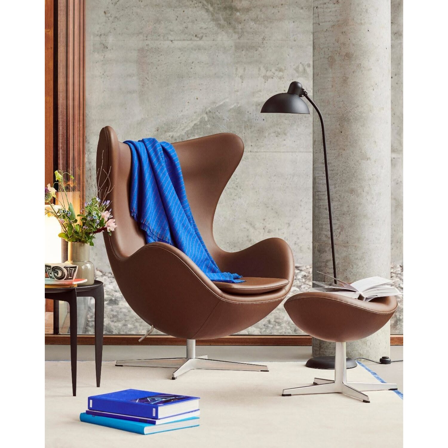 La Egg™ Lounge Chair Cuero Nogal es una de las piezas más célebres del diseño escandinavo, creada por Arne Jacobsen en 1958 para Fritz Hansen.