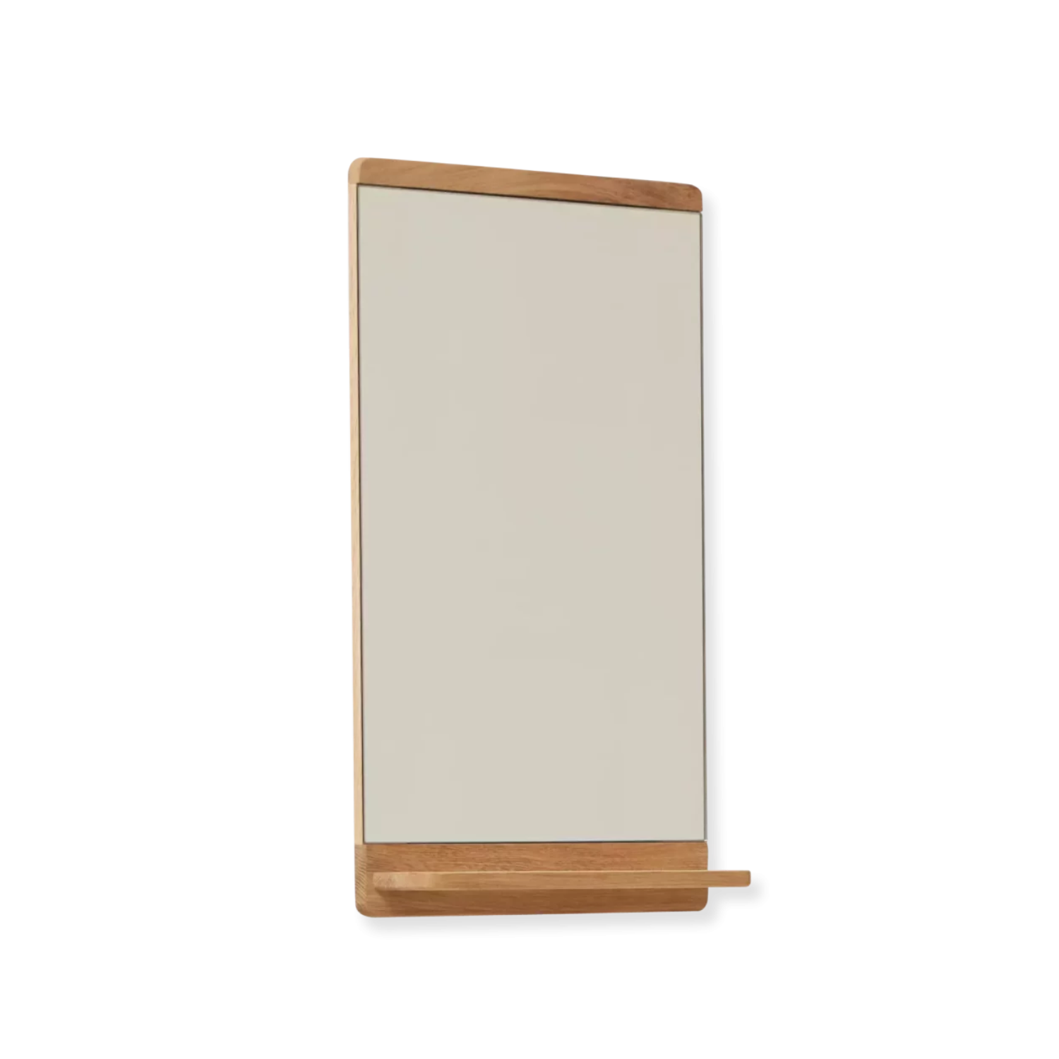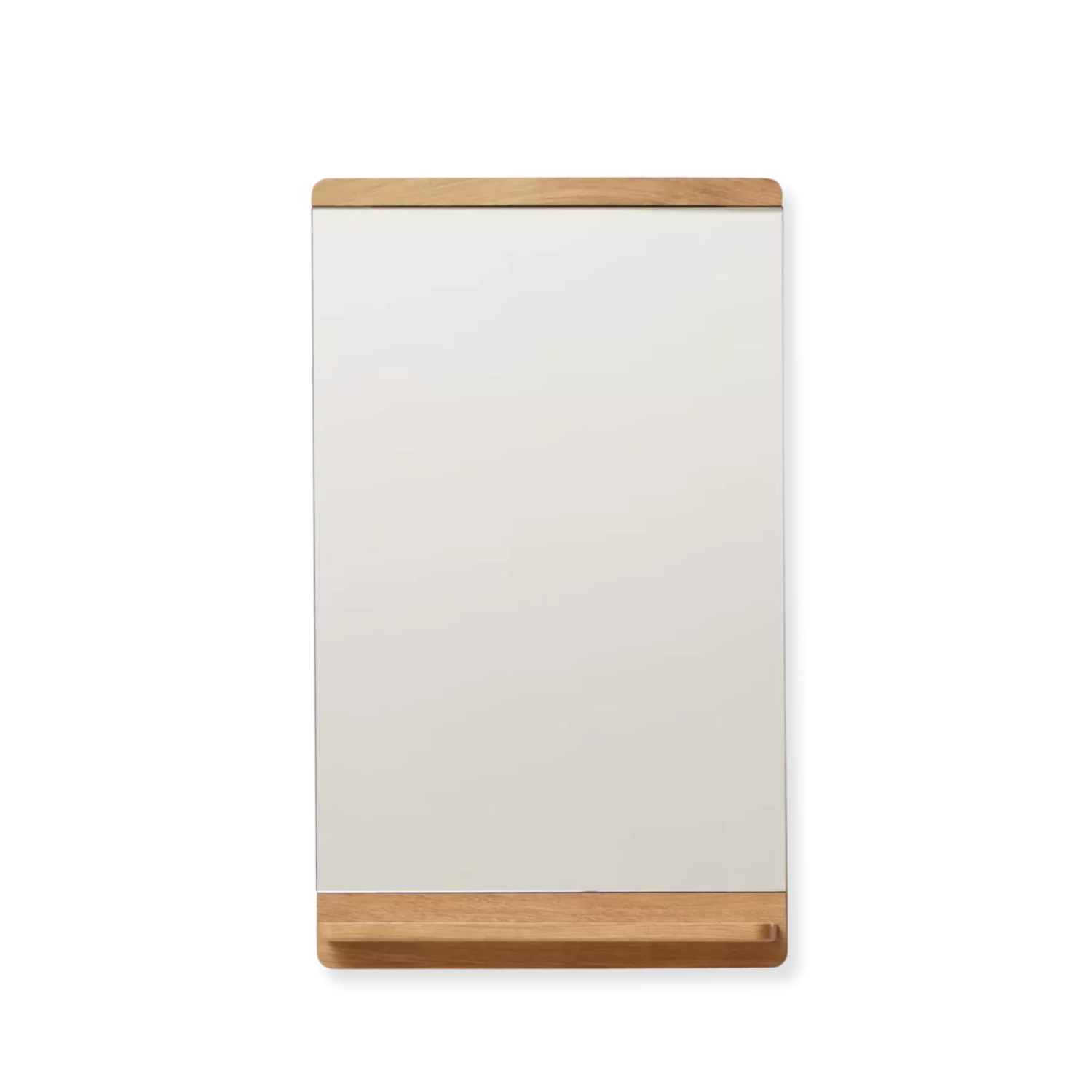 Espejo Rim de Jonas Herman para Form & Refine, fabricado en roble macizo con estante integrado y acabado en aceite natural. Diseño minimalista, funcional y elegante, ideal para cualquier estancia.