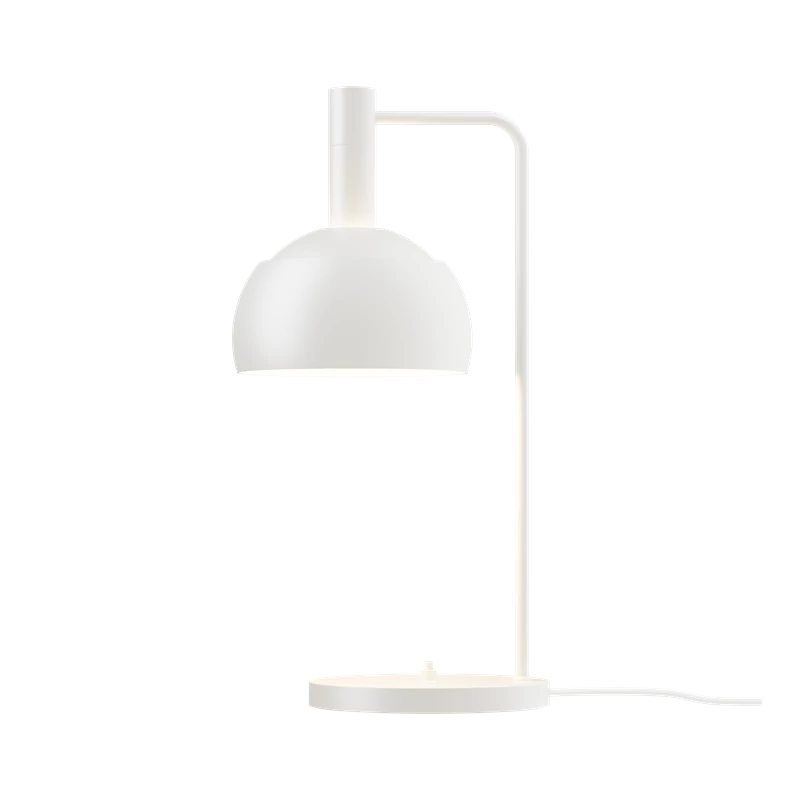 Lámpara de sobremesa FJ Elements de Louis Poulsen en White. Diseño de Finn Juhl con metal pintado mate, cable textil blanco e interruptor en la base.
