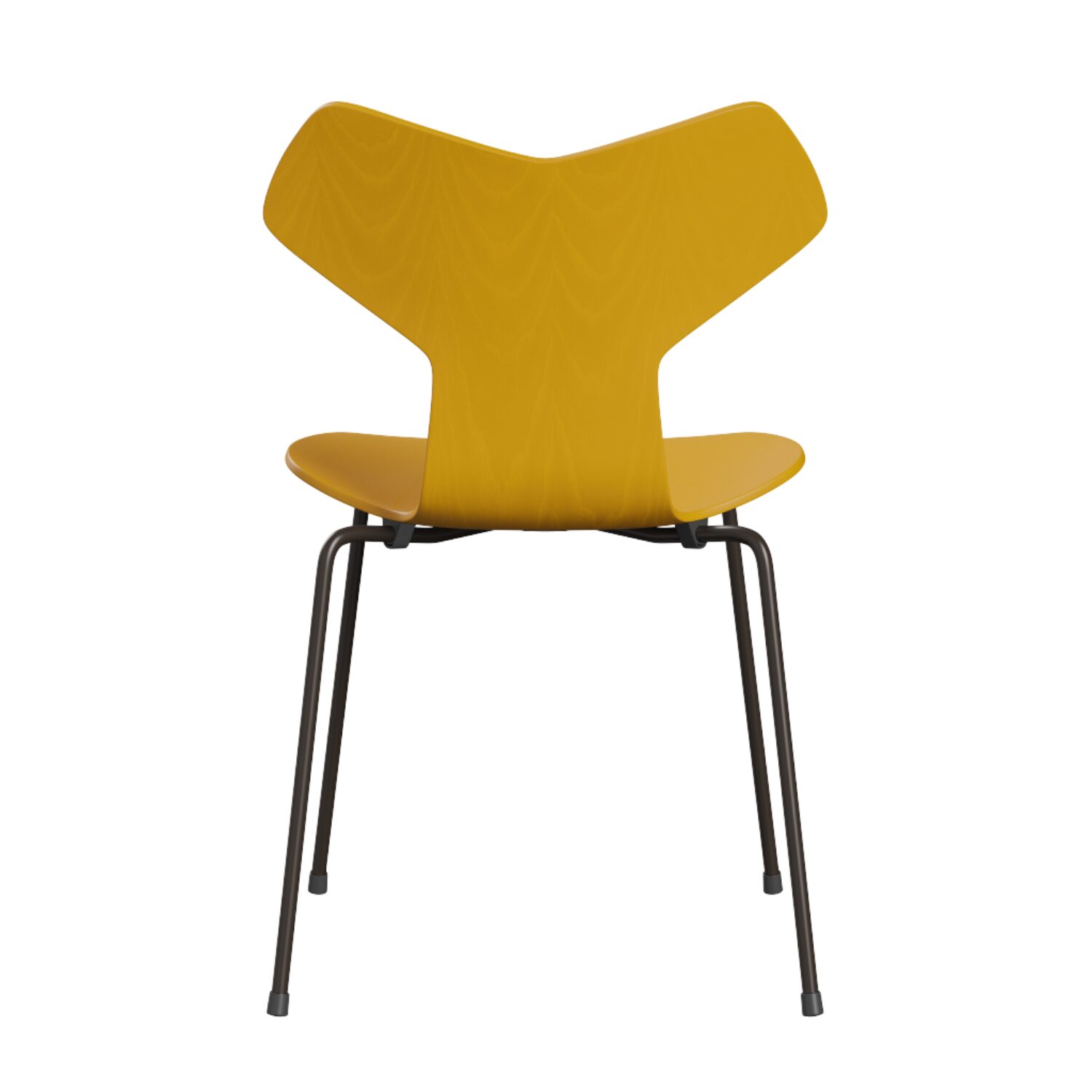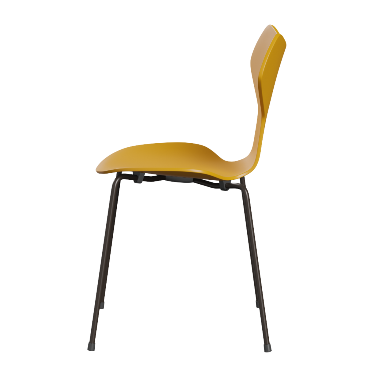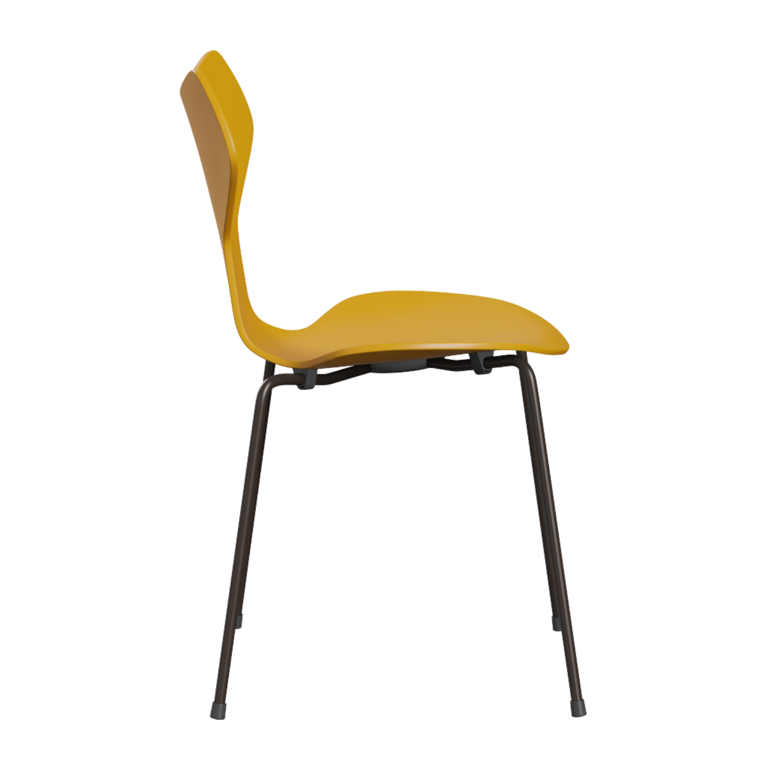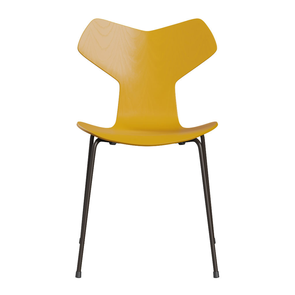 La Grand Prix™ Chair de Fritz Hansen, diseñada por Arne Jacobsen, es una silla icónica del diseño danés moderno. Su carcasa de fresno lacado True Yellow y su estructura de acero Brown Bronze aportan carácter, ligereza visual y una presencia atemporal, ideal para interiores residenciales y proyectos contract.