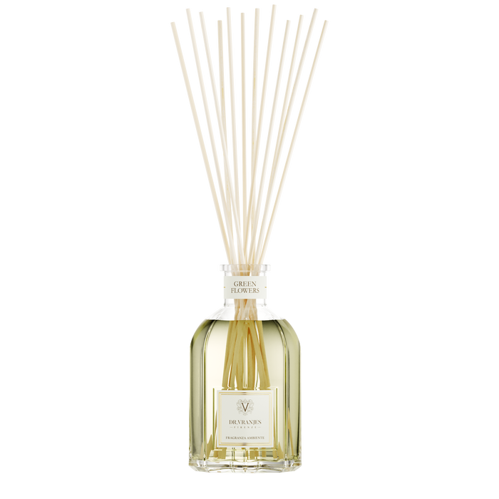 Mikado Green Flowers 500 ml de Dr. Vranjes. Fragancia floral y verde con flores de té, cítricos, jazmín y menta silvestre.