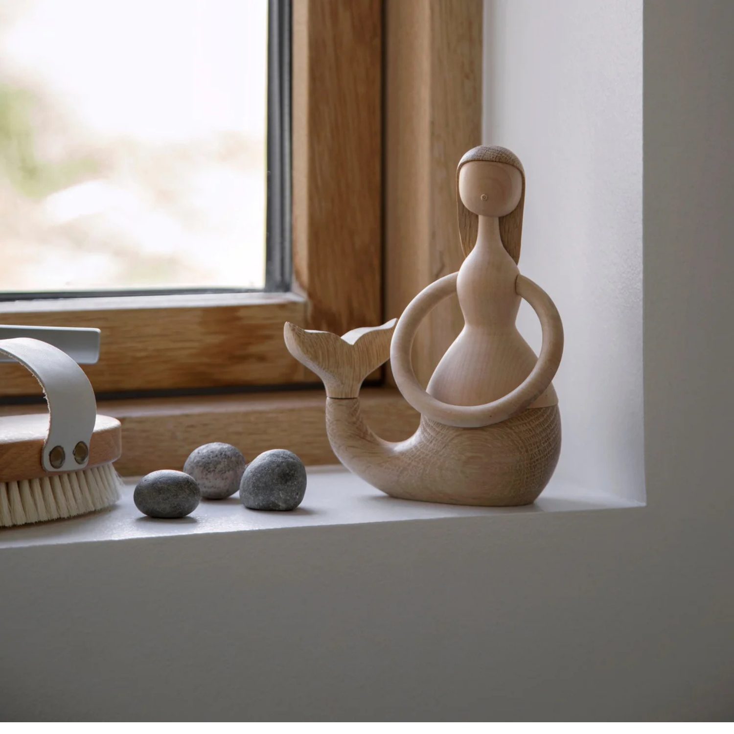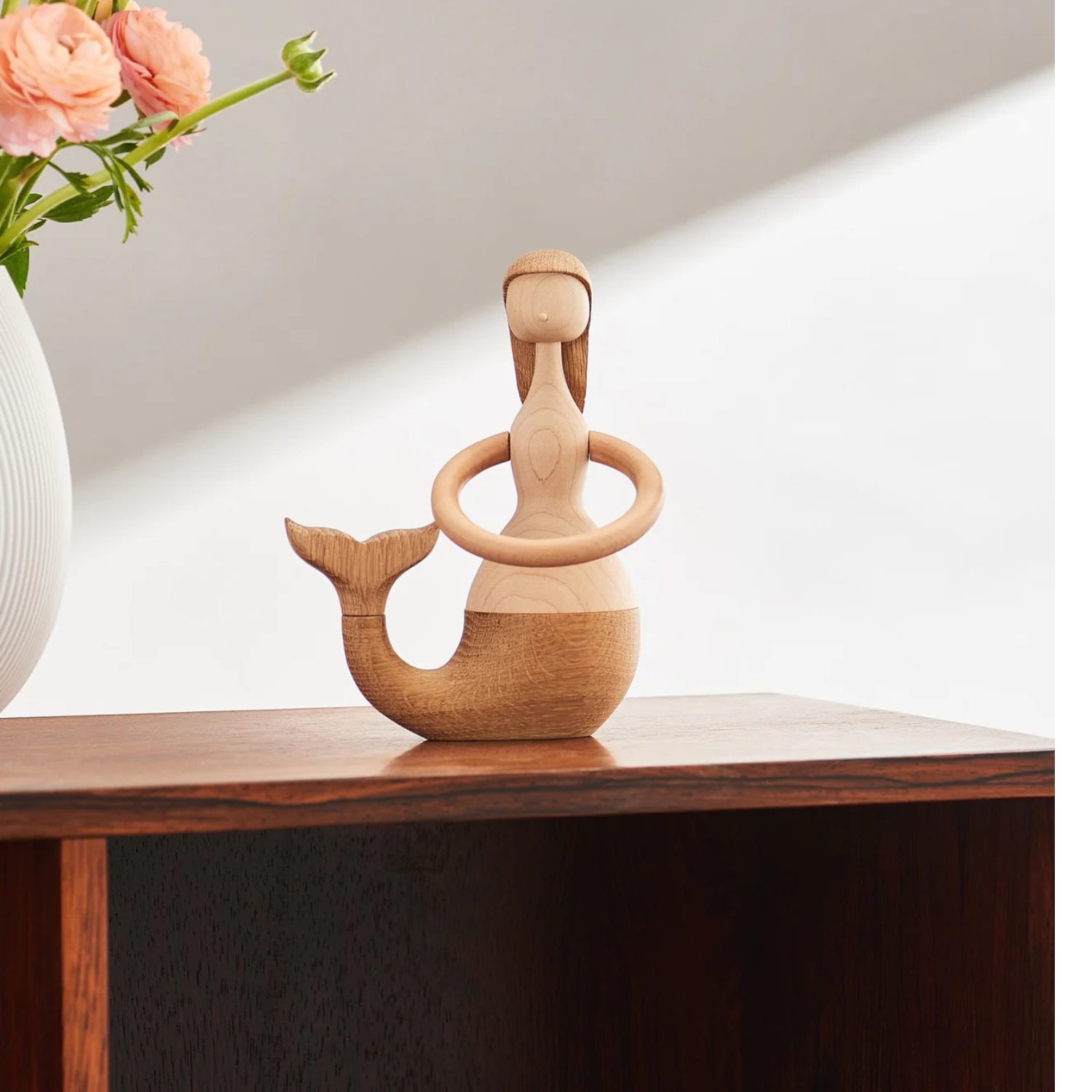 Sirena de Hans Bølling (16,7 cm), fabricada en madera de roble y arce, con diseño modular que permite múltiples expresiones.