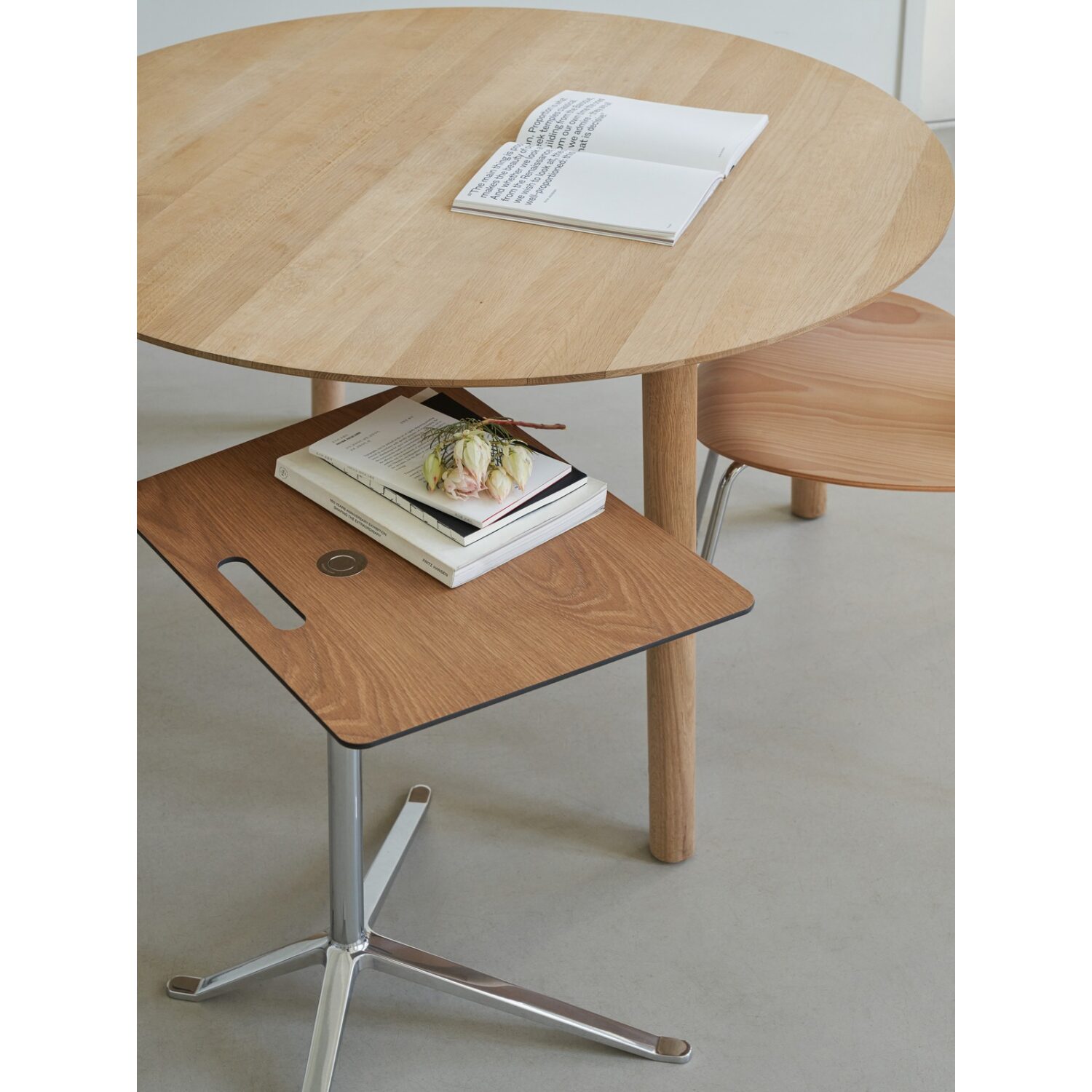 La HVEN Table se define por un lenguaje formal suave y equilibrado. Su tablero redondo reduce la percepción visual del volumen y favorece una distribución más fluida del espacio, especialmente en estancias de tamaño medio o reducido. La forma circular elimina jerarquías y fomenta una experiencia de uso más cercana, ideal para comidas compartidas y encuentros informales.