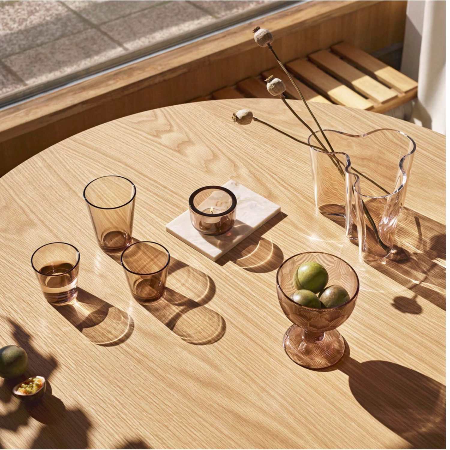 La colección Kartio, creada por Kaj Franck, refleja su búsqueda de la esencia. Con proporciones equilibradas y una amplia paleta de colores, es un icono del vidrio escandinavo que ha perdurado por generaciones.