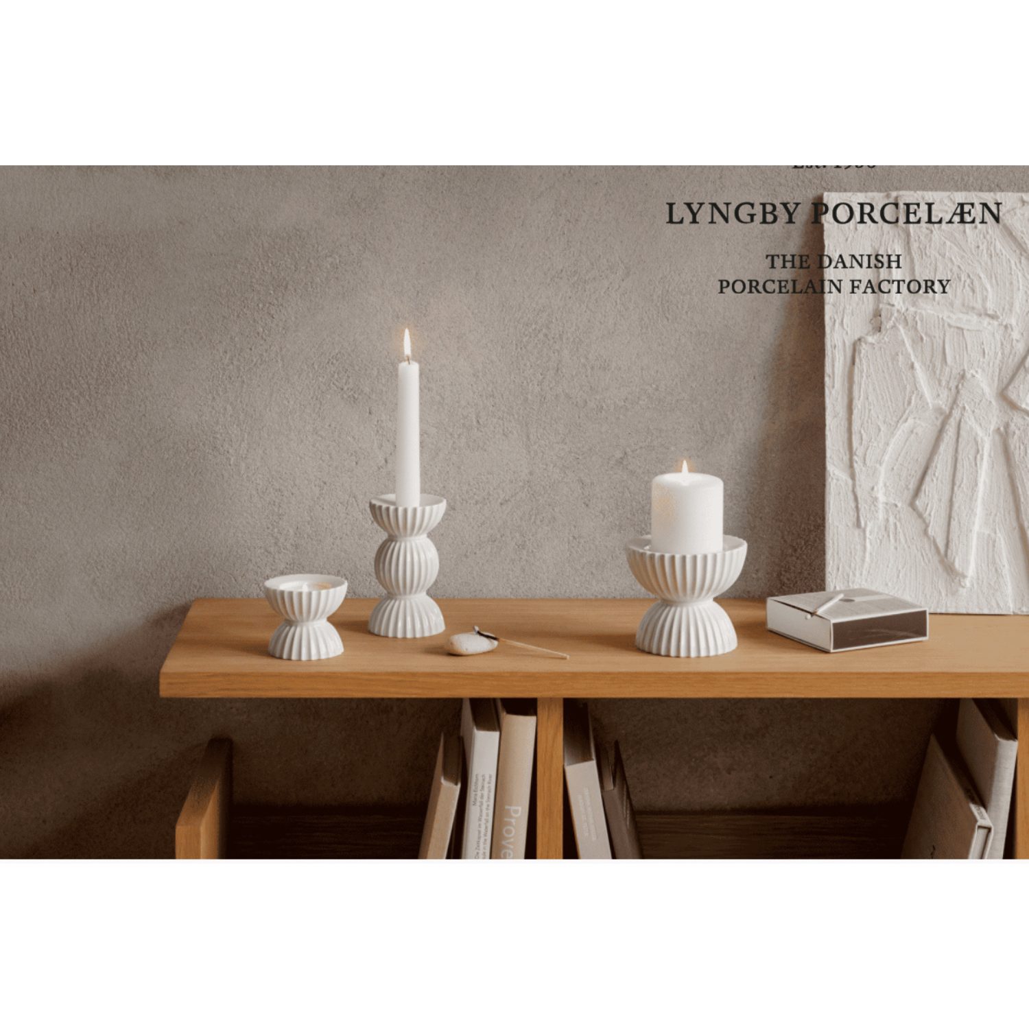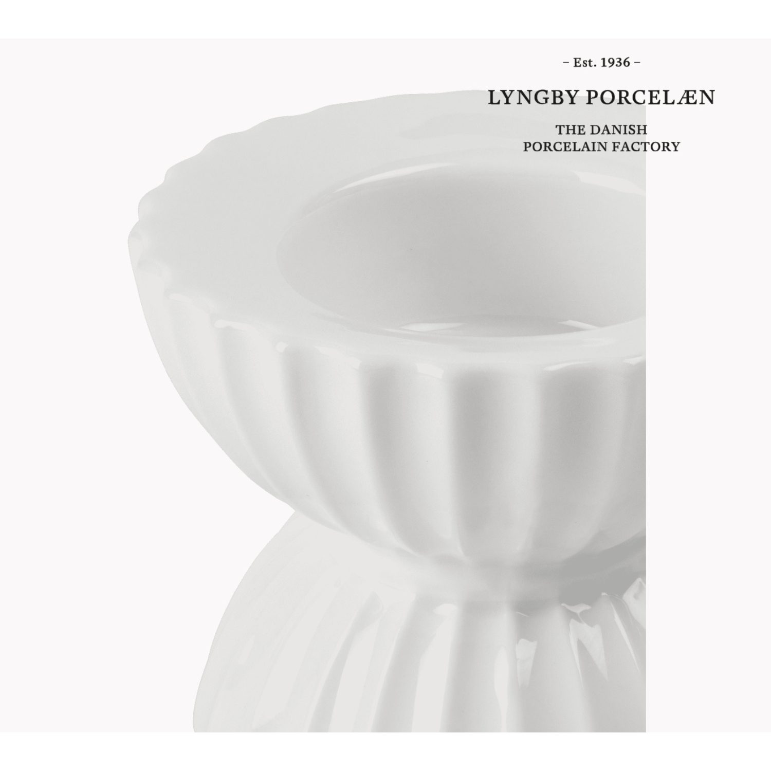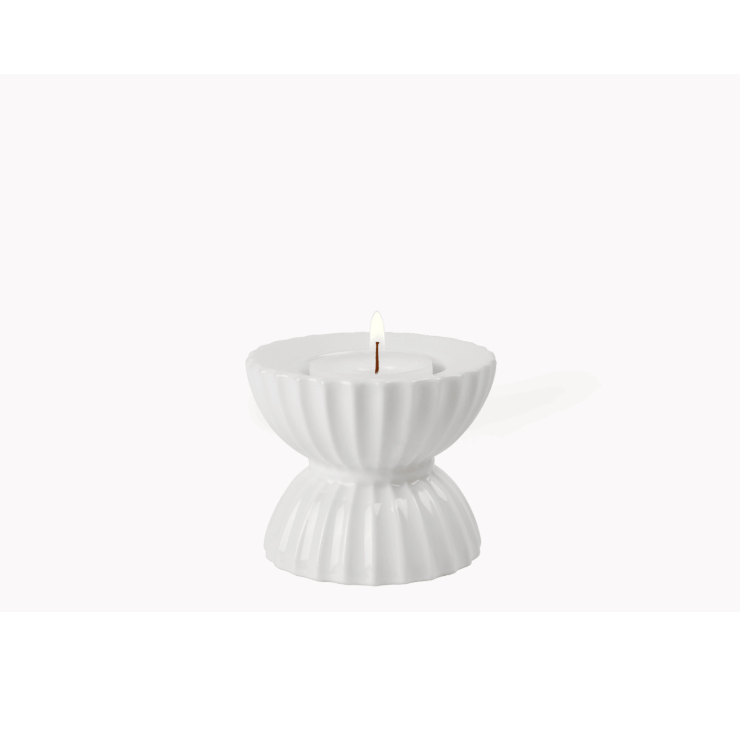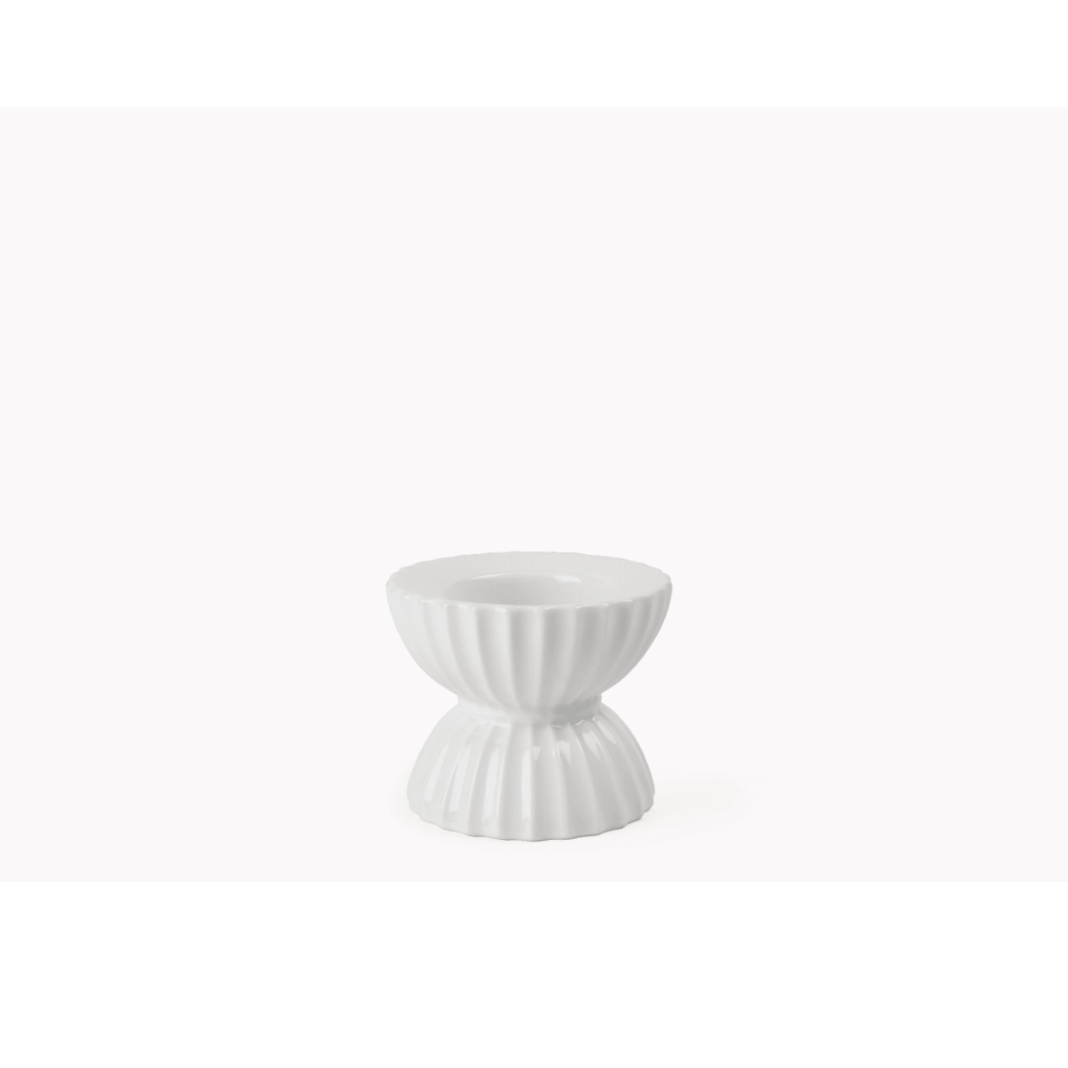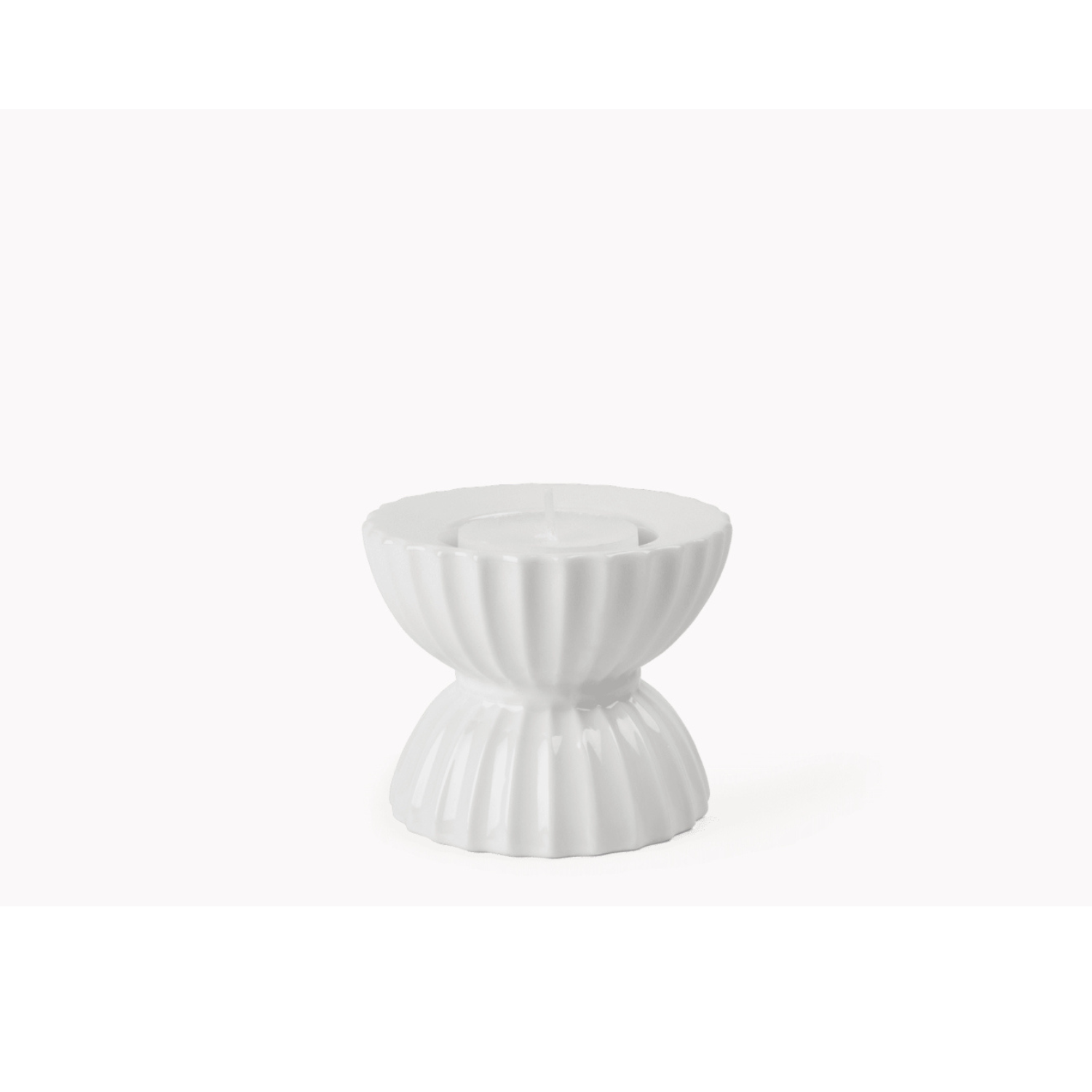 Portavelas Lyngby Tura Ø8 cm en porcelana blanca. Diseño escultórico y minimalista de Philip Bro Ludvigsen.