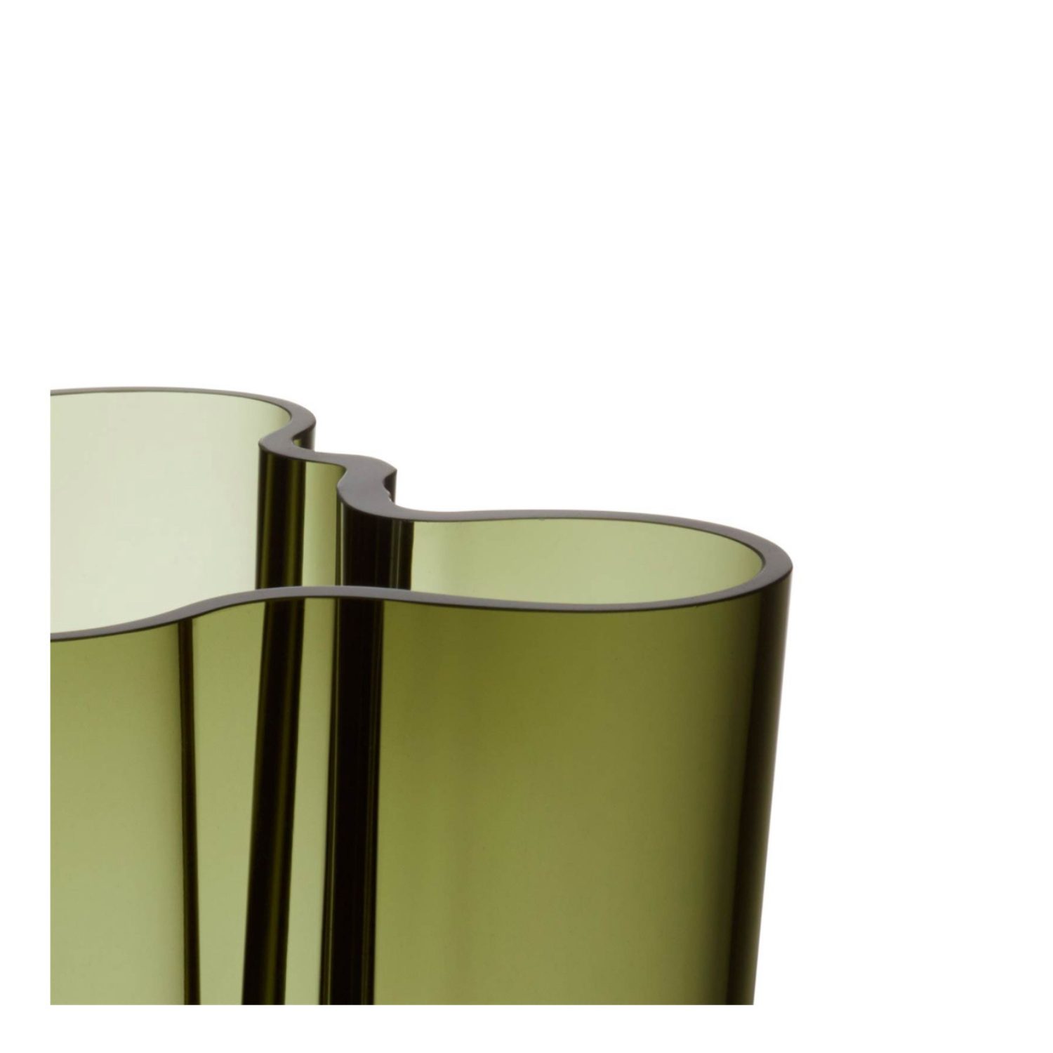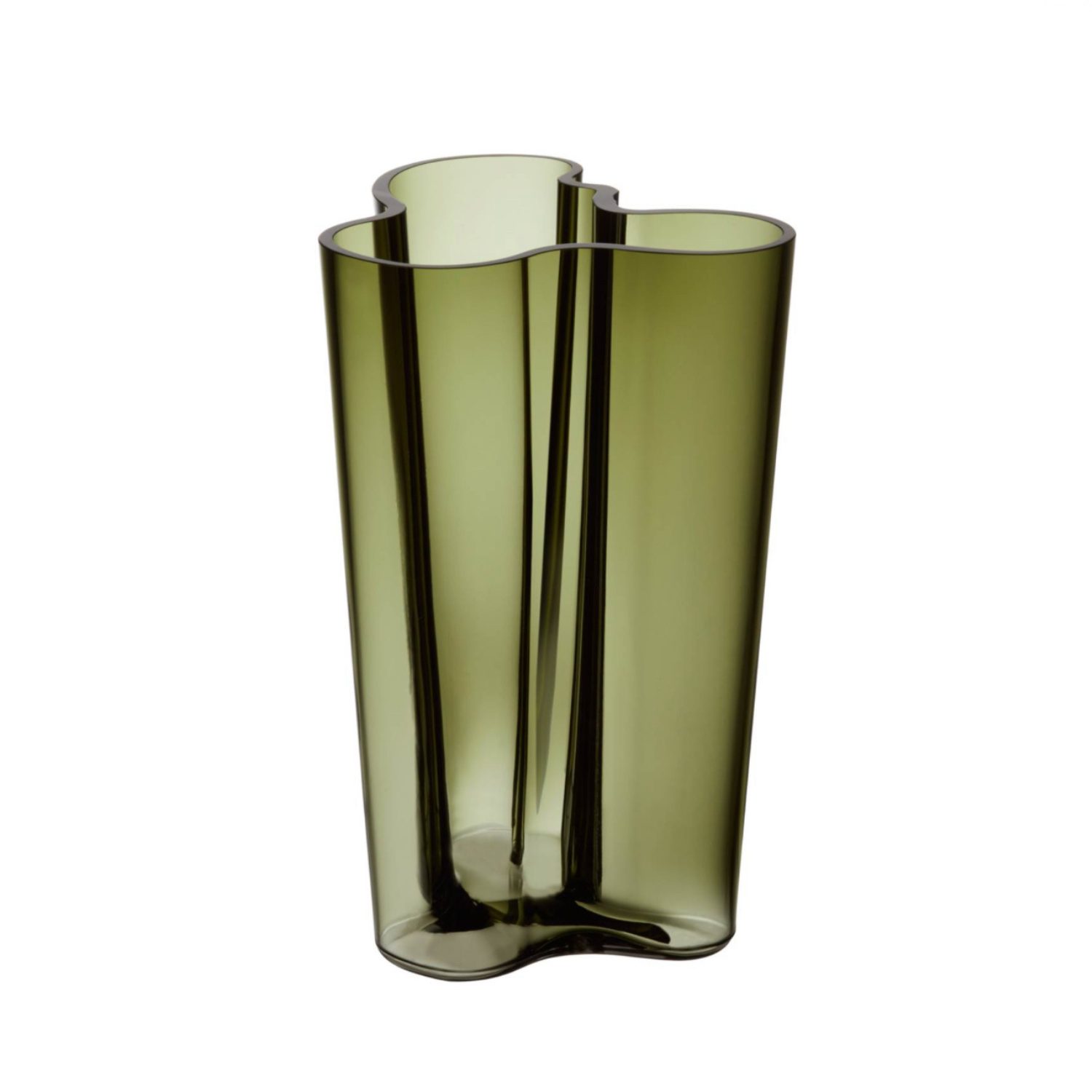 Iittala Alvar Aalto Vase 251mm Moss Green – jarrón de cristal soplado a boca, creado artesanalmente por siete maestros vidrieros. Icono del diseño escandinavo y parte de la colección permanente del MoMA de Nueva York.