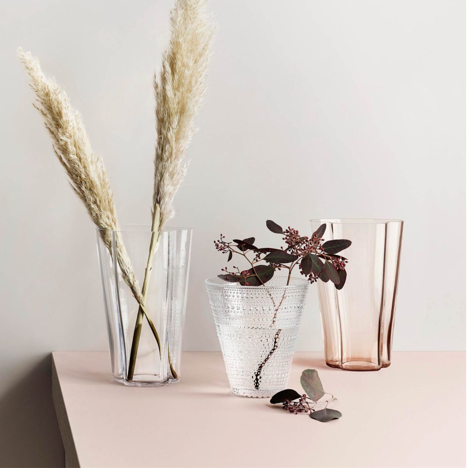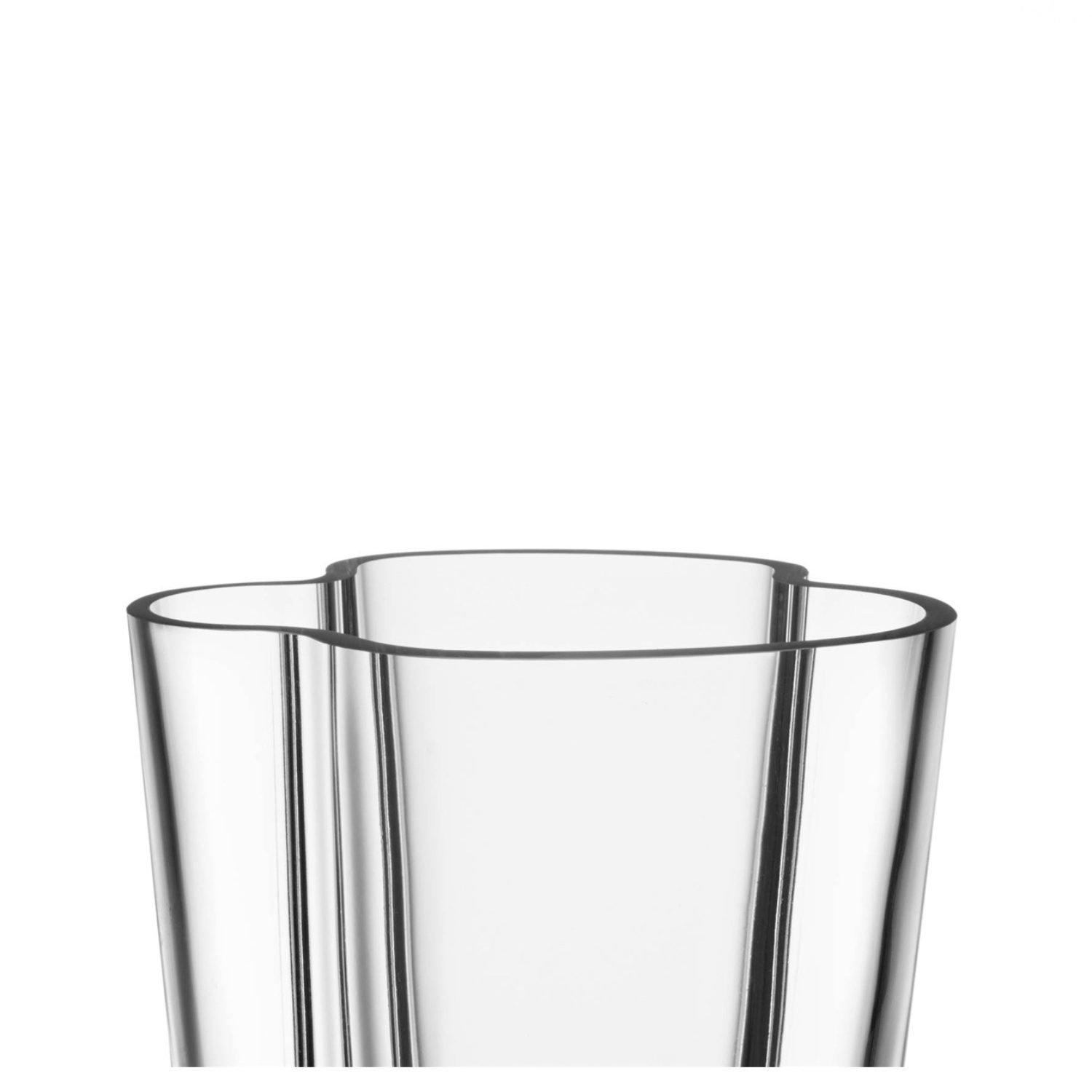 Iittala Alvar Aalto Vase 220mm Clear – jarrón de cristal soplado a boca, creado artesanalmente por siete maestros vidrieros. Icono del diseño escandinavo y parte de la colección permanente del MoMA de Nueva York.