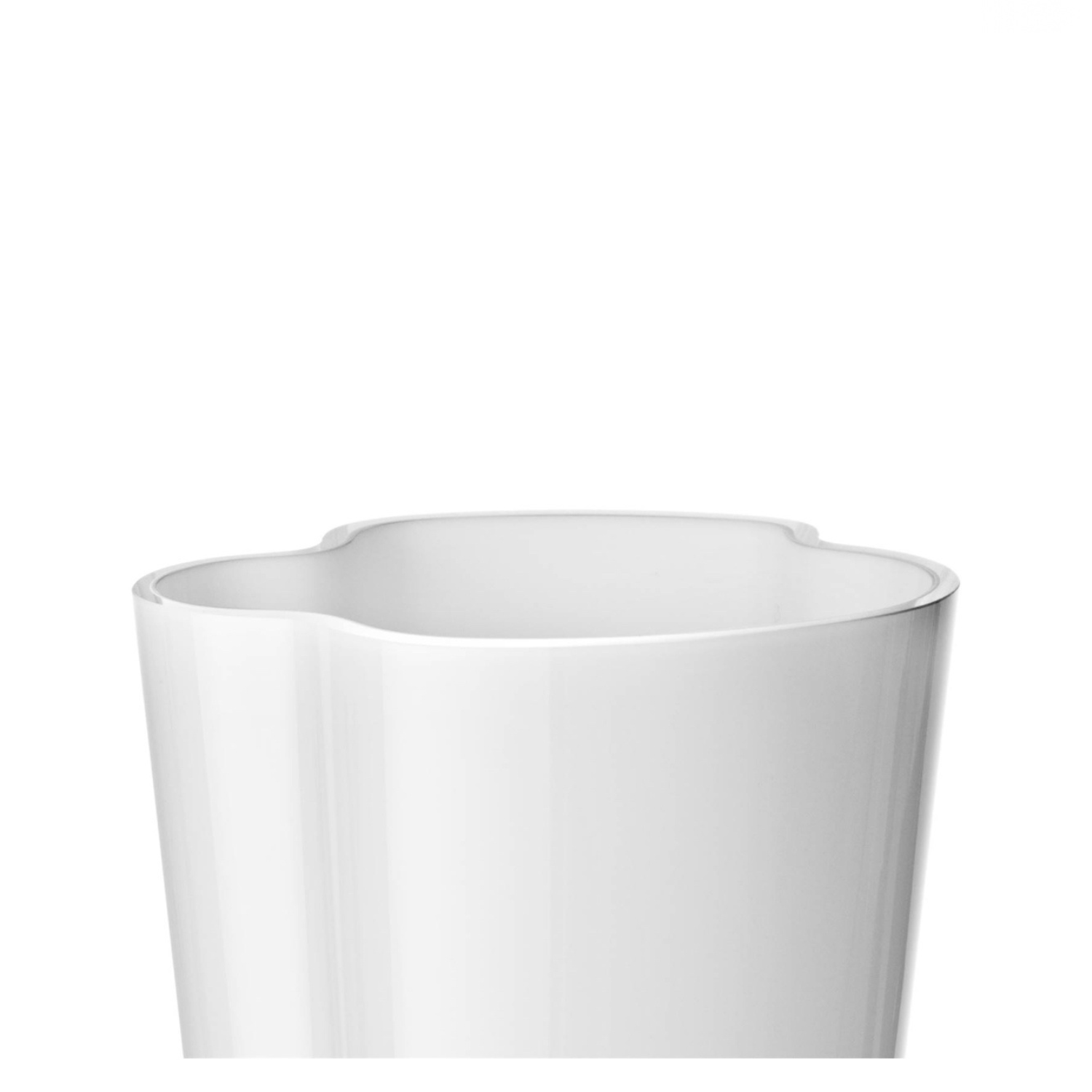Iittala Alvar Aalto Vase 220mm White – jarrón de cristal soplado a boca, creado artesanalmente por siete maestros vidrieros. Icono del diseño escandinavo y parte de la colección permanente del MoMA de Nueva York.