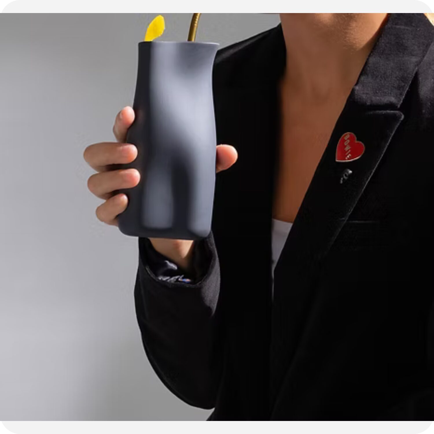 El diseño fluido de su silueta se adapta naturalmente a la mano, reafirmando la intención de crear objetos sensoriales que invitan a ser tocados, usados y contemplados.