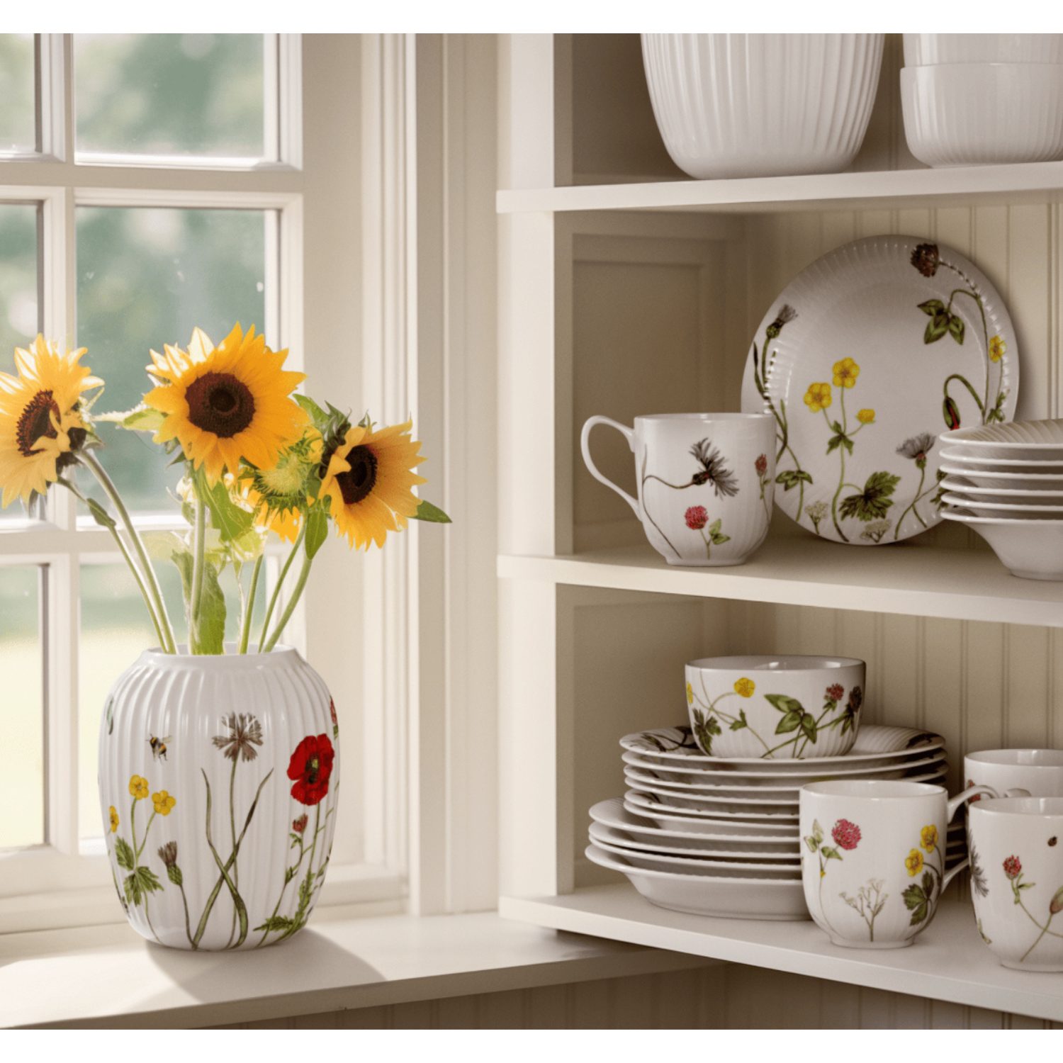 La colección Hammershøi Summer transmite el ambiente cálido y luminoso de la estación estival a través de motivos florales llenos de color. Cada pieza conecta la tradición de la porcelana danesa con un estilo natural y auténtico que llena de vida la mesa.