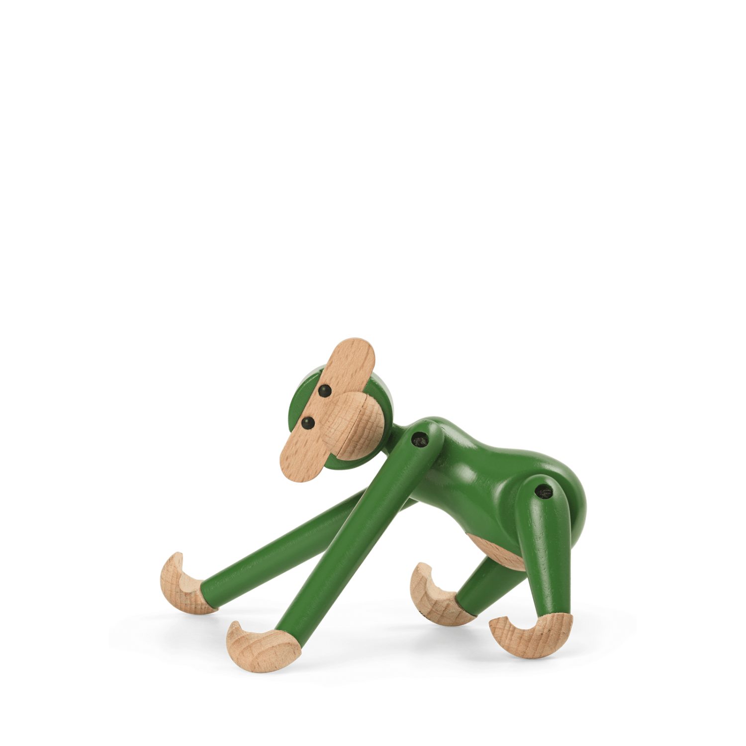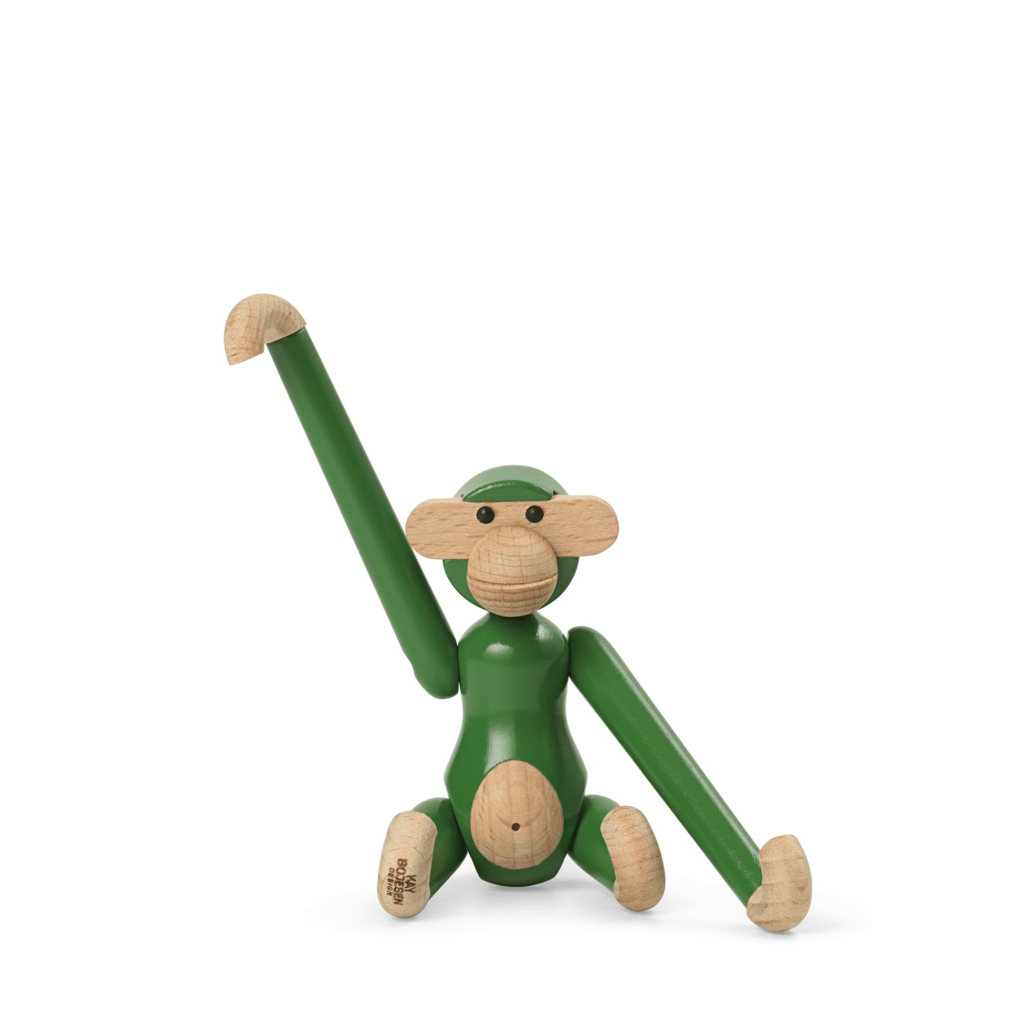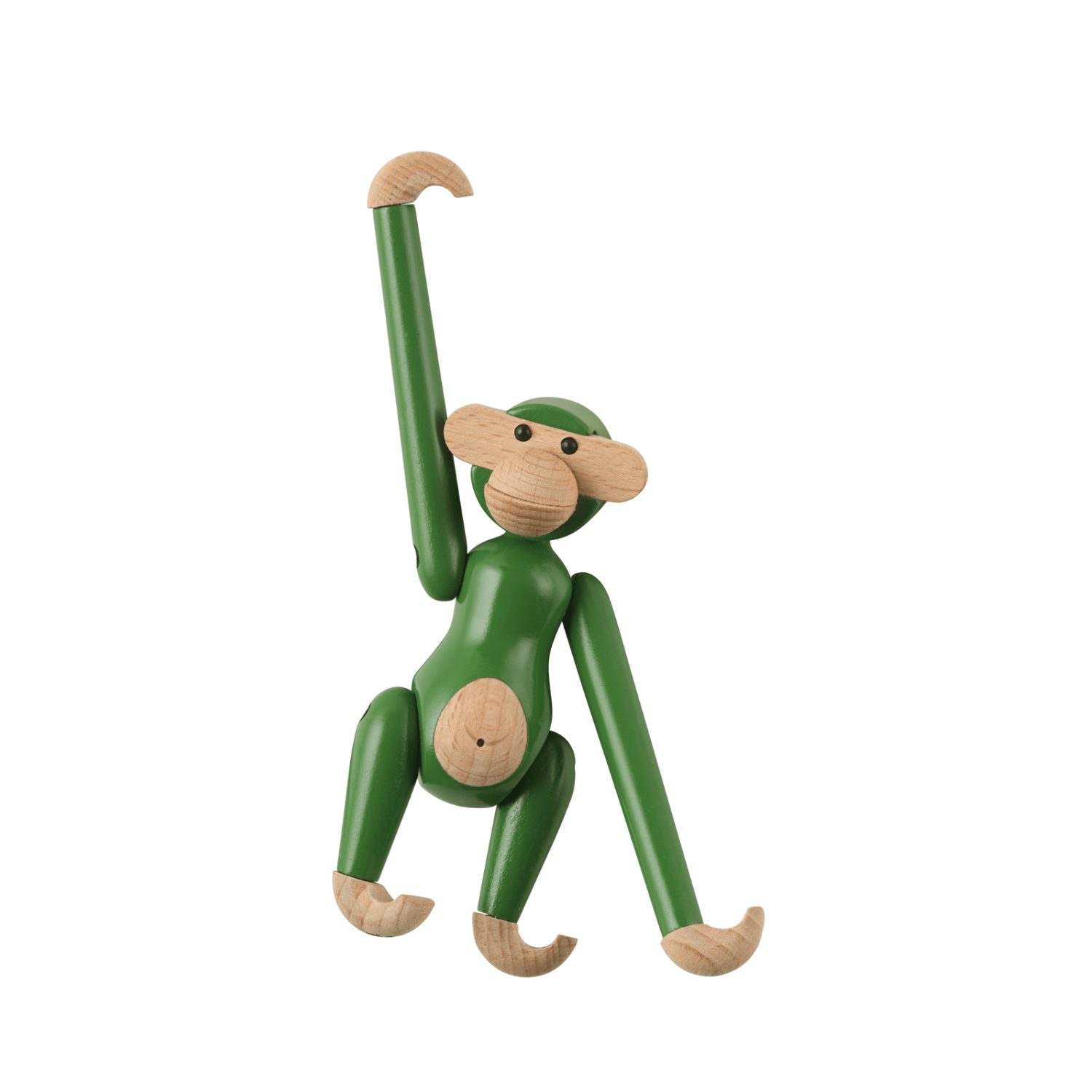 Kay Bojesen Monkey Mini Vintage Green en madera de haya pintada FSC®, 9,5 cm. Una versión retro y fresca del clásico de 1951 que aporta vitalidad, diseño escandinavo y encanto atemporal.