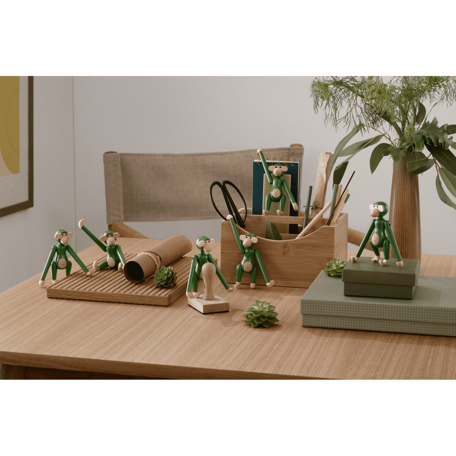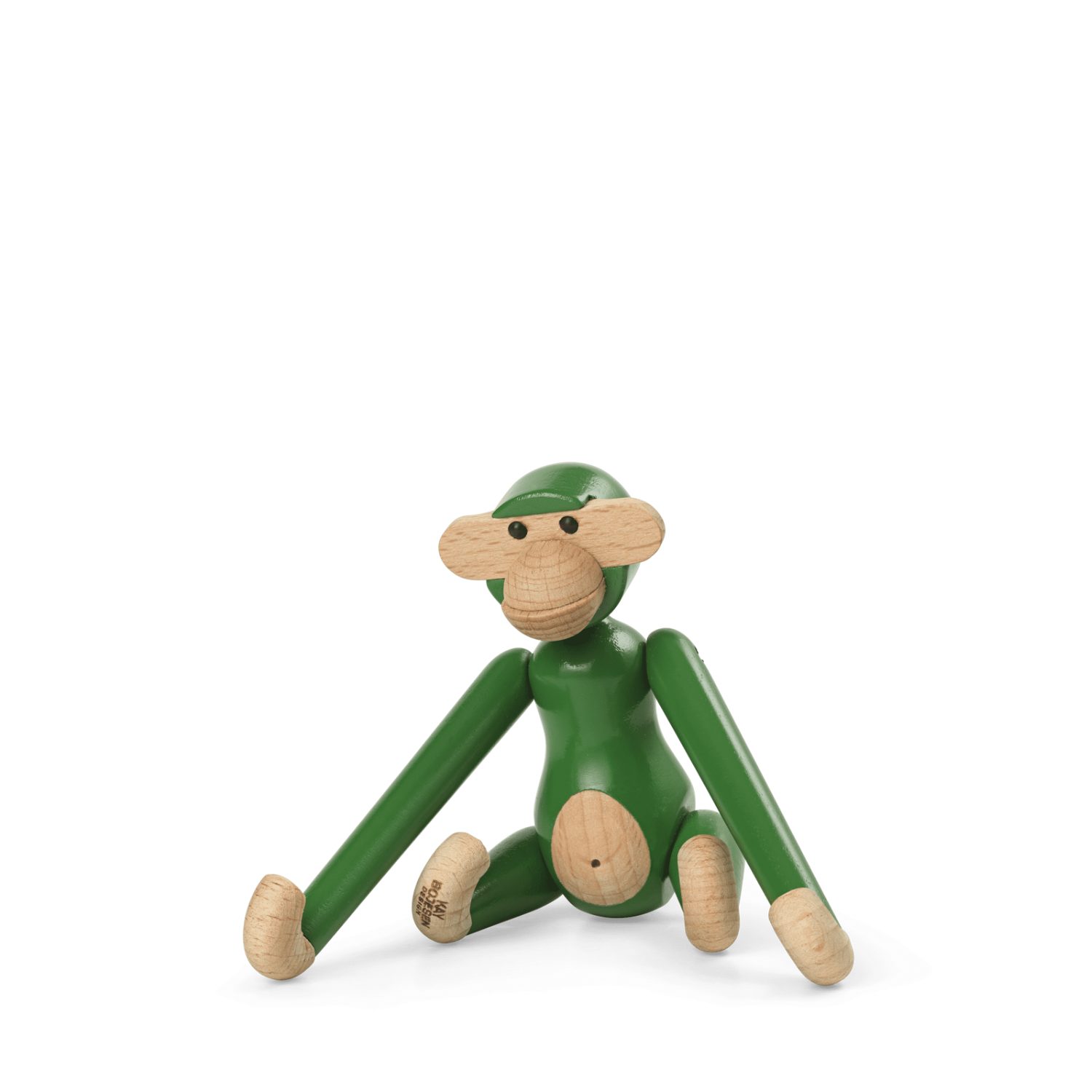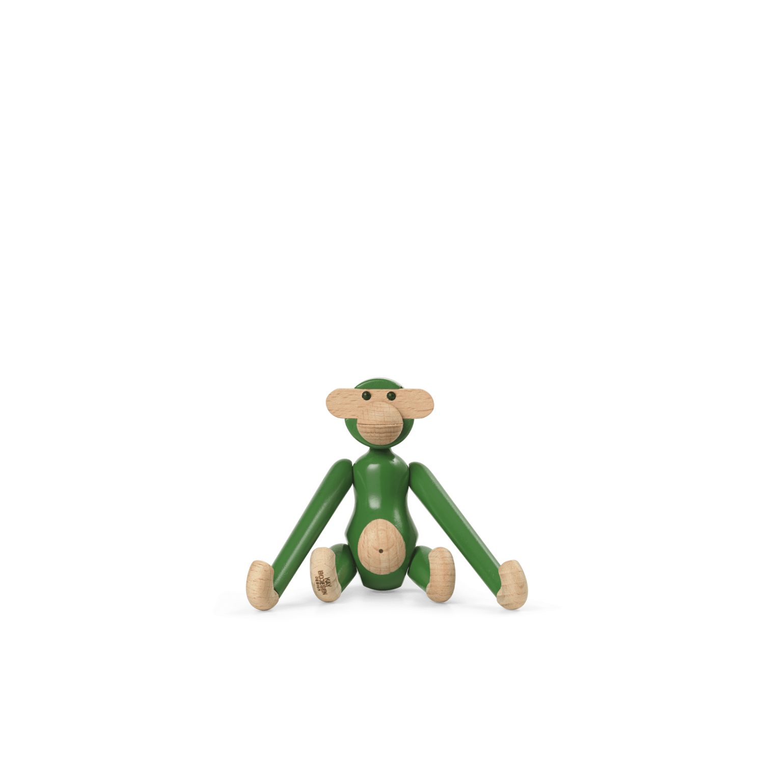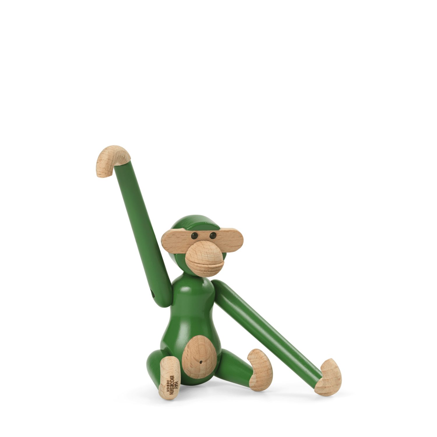 Kay Bojesen Monkey Mini Vintage Green en madera de haya pintada FSC®, 9,5 cm. Una versión retro y fresca del clásico de 1951 que aporta vitalidad, diseño escandinavo y encanto atemporal.