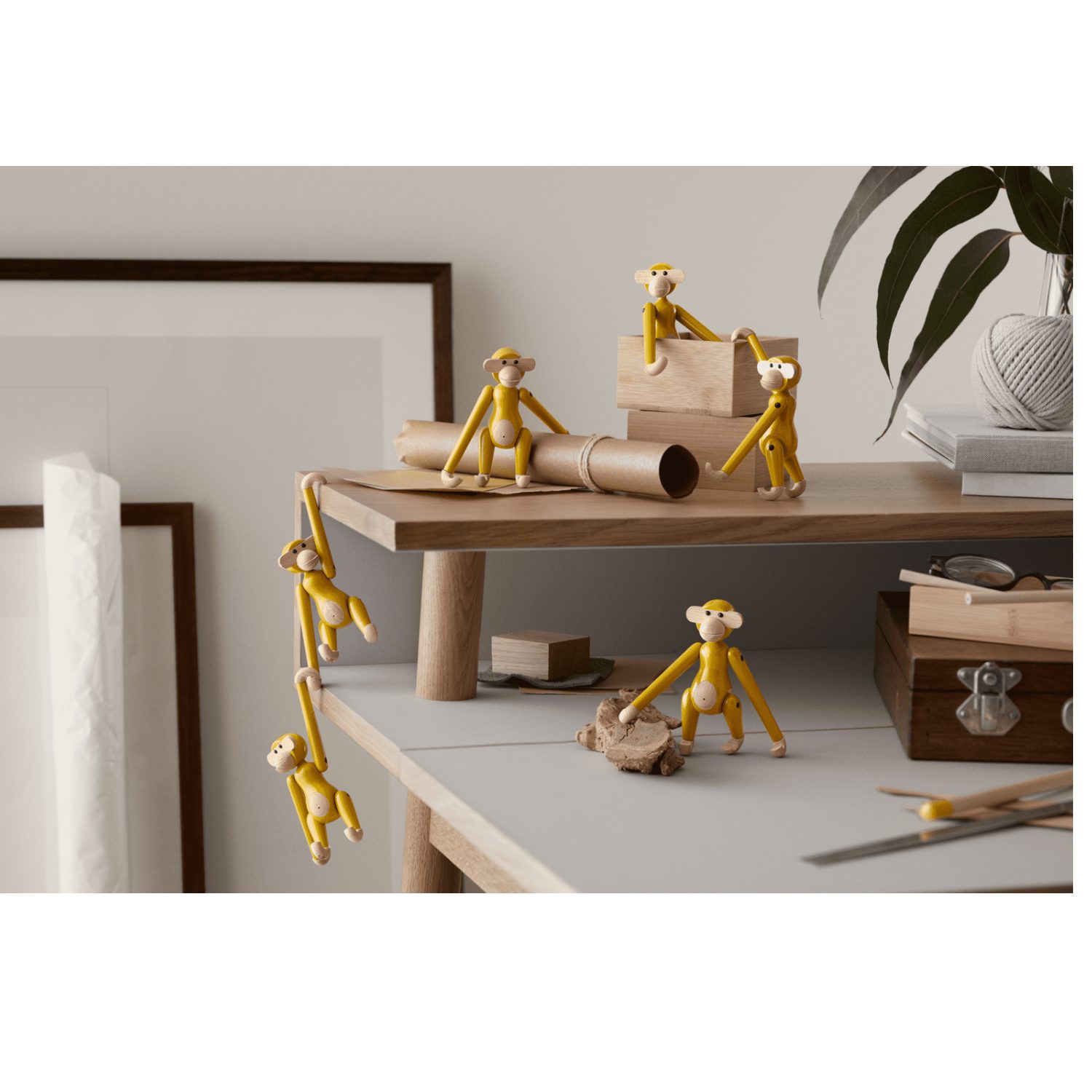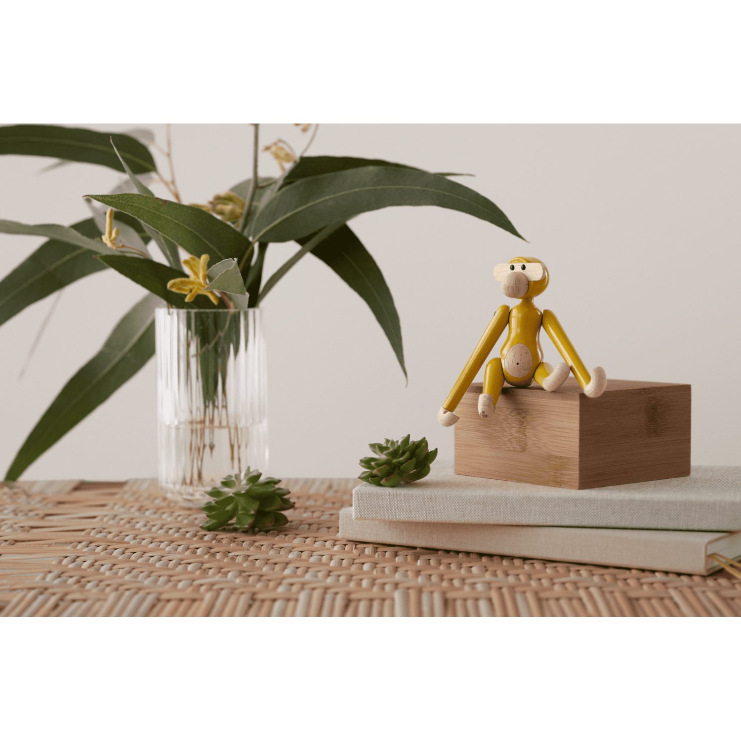 Kay Bojesen Monkey Mini Vintage Yellow en madera de haya pintada FSC®, 9,5 cm. Una versión retro y alegre del clásico de 1951 que transmite optimismo y diseño escandinavo atemporal.
