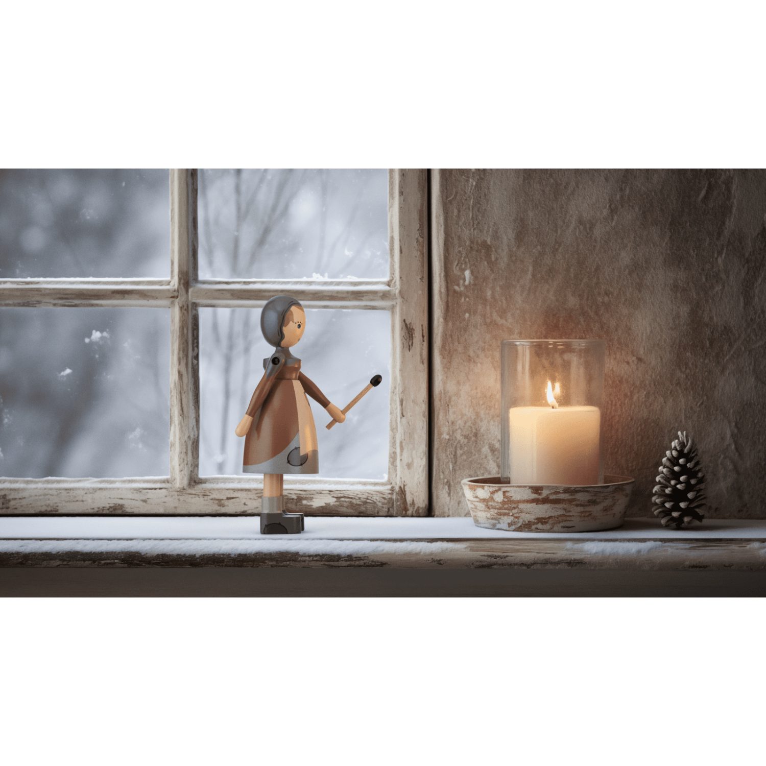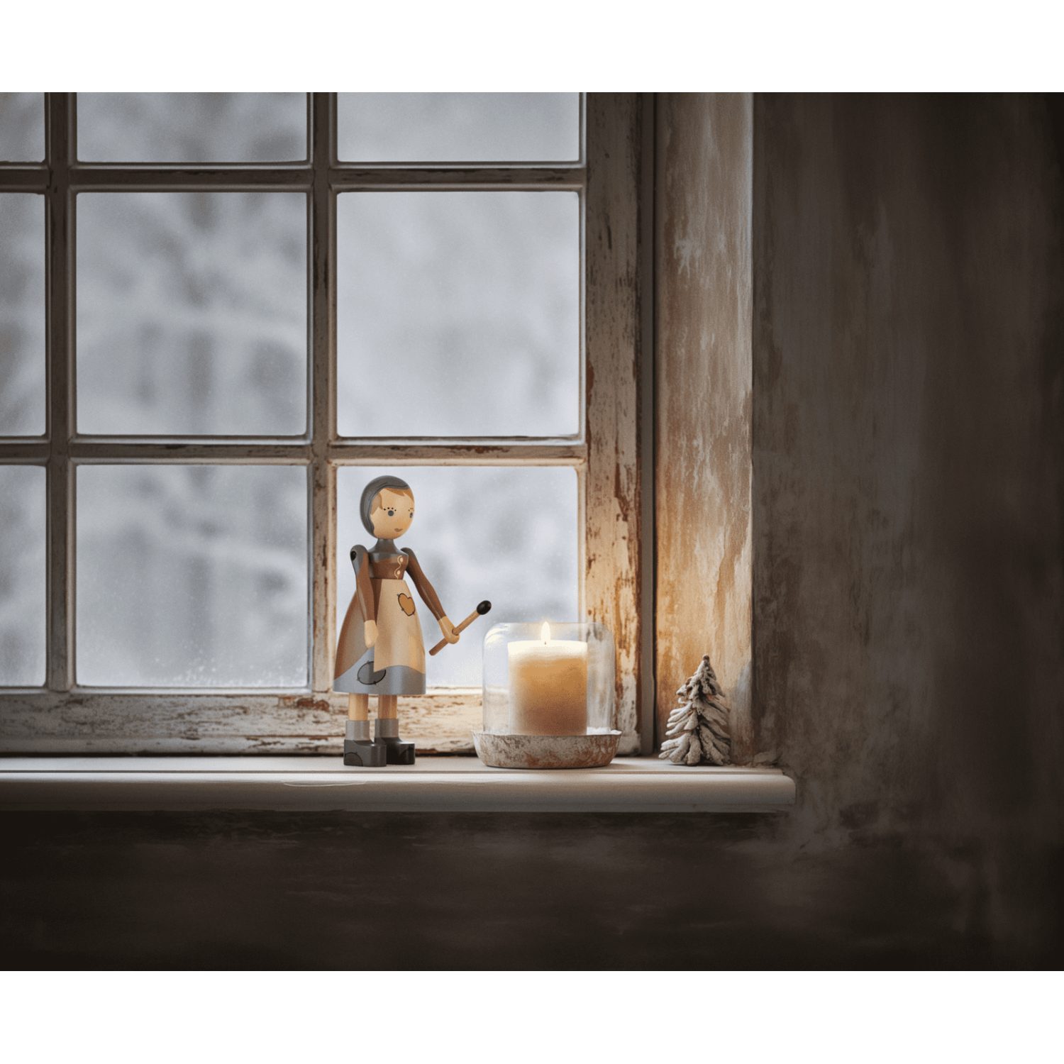 Fabricada en madera de haya pintada con certificación FSC®, la Niña Cerillera mide 14,5 cm de alto y ha sido producida con el cuidado artesanal característico de Kay Bojesen. Su expresión amable e inocente aporta calidez, mientras que sus colores delicados subrayan la sencillez y ternura del personaje.