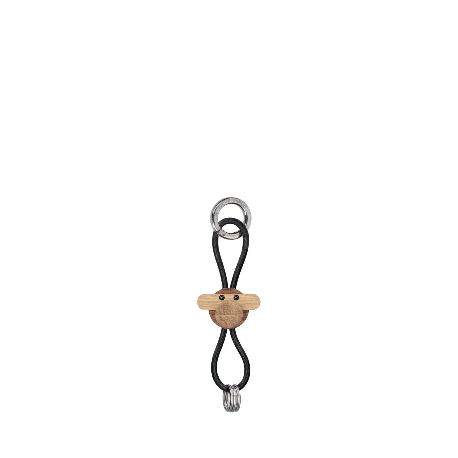 Llavero Mono Plata Kay Bojesen con Piel Negra. Madera FSC®, piel auténtica y aro metálico grabado. Diseño danés funcional con personalidad icónica.