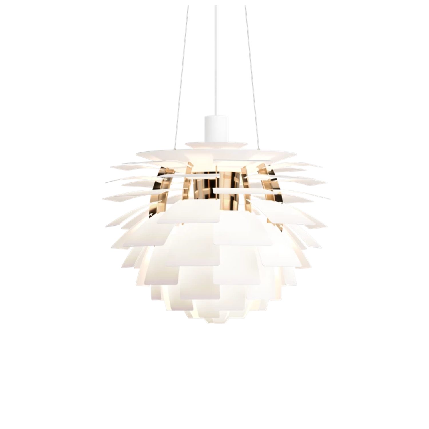 Lámpara PH Artichoke Ø480 de Louis Poulsen, diseñada por Poul Henningsen. Un icono del diseño danés, escultural, atemporal y fabricado a mano en Dinamarca.