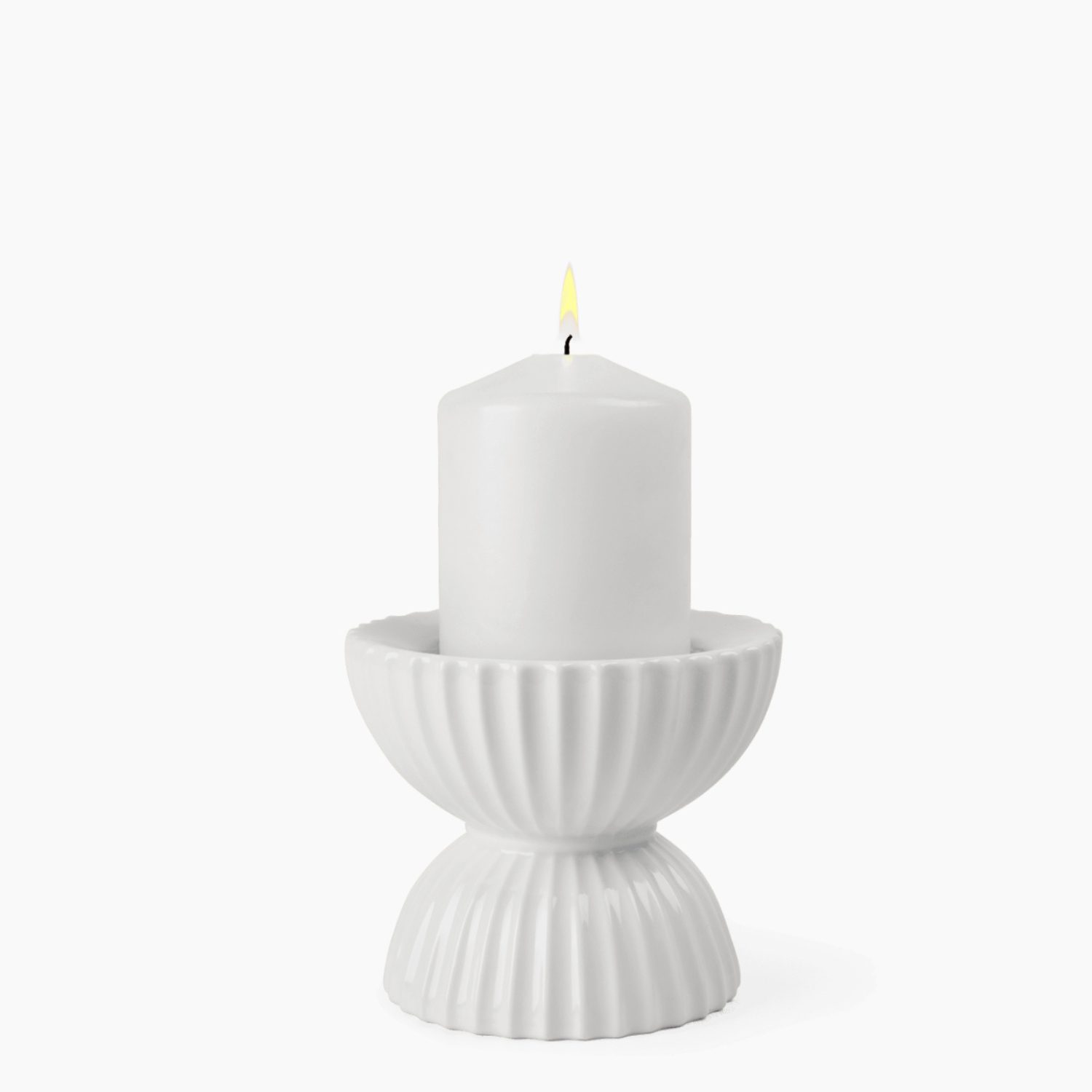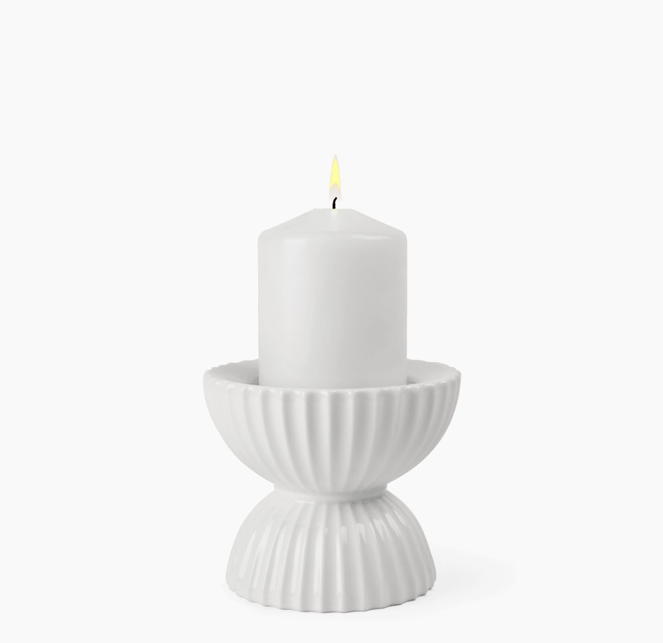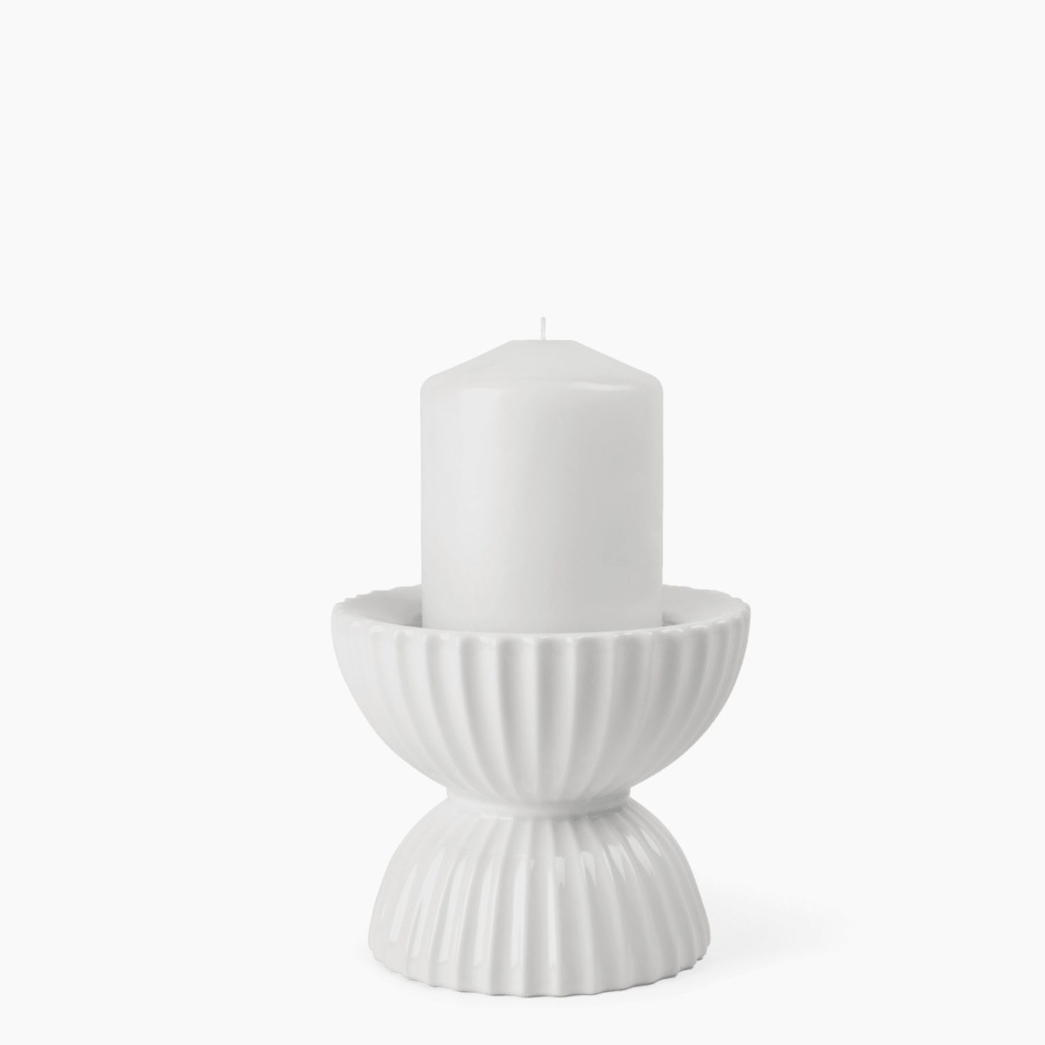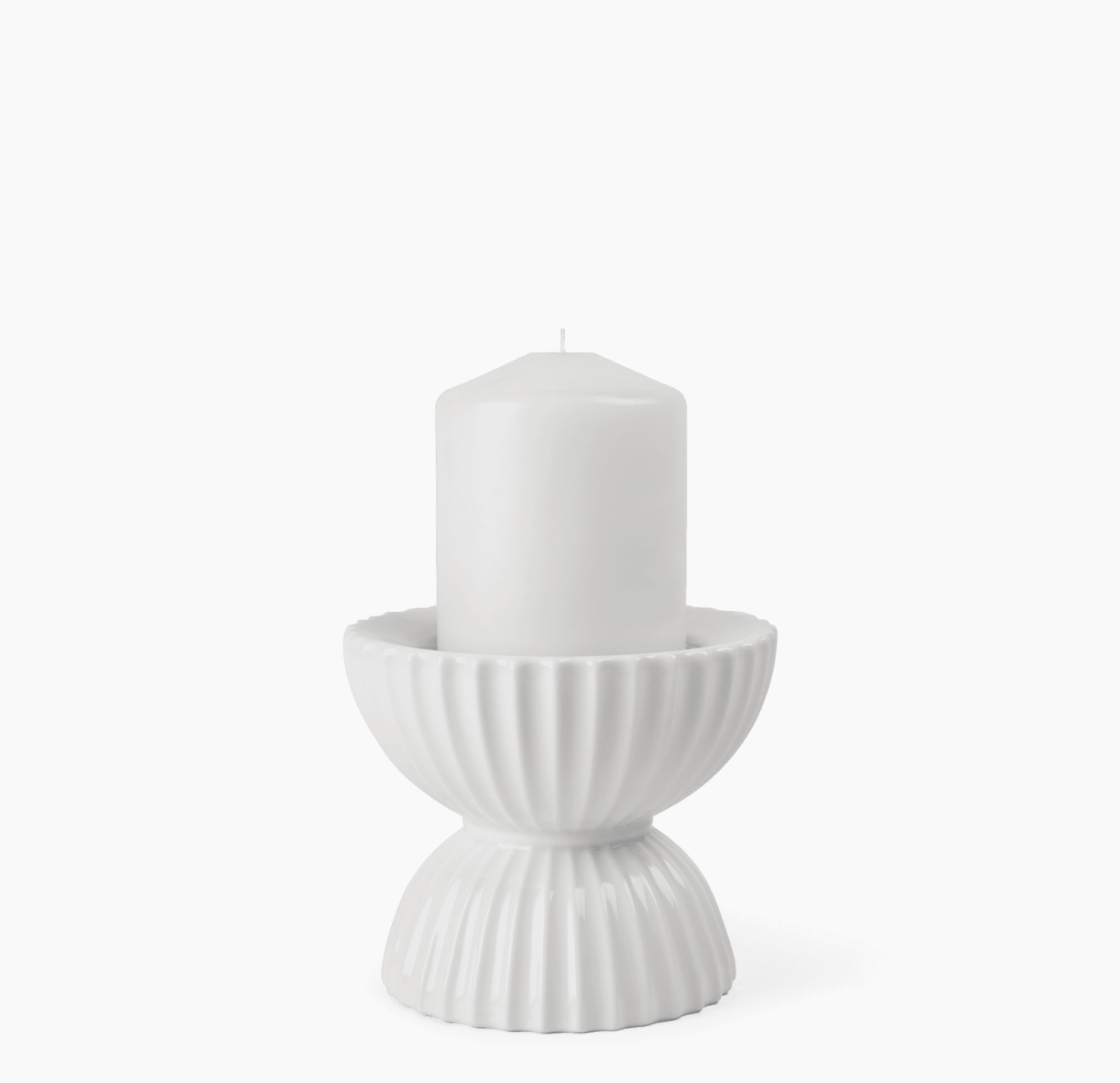 Portavelas Lyngby Tura Block H10 cm en porcelana blanca. Diseño escultórico y minimalista de Philip Bro Ludvigsen.