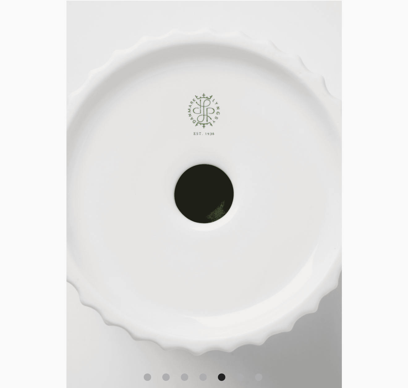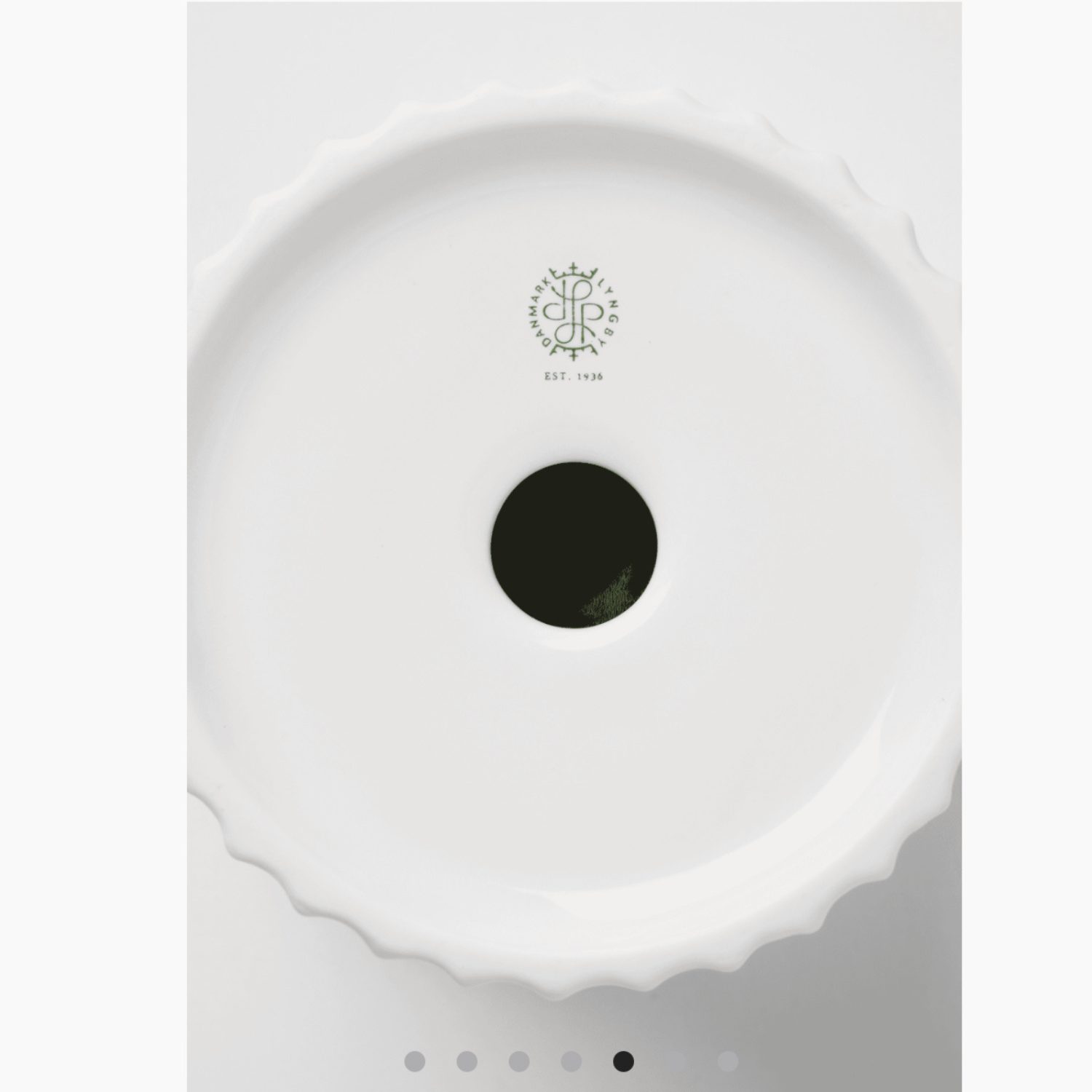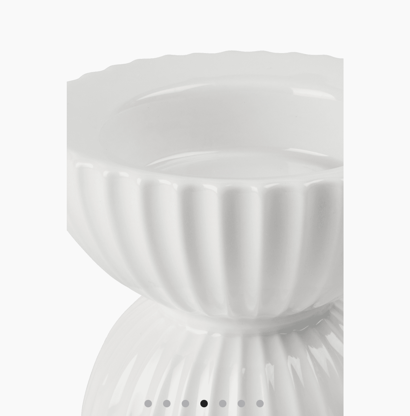 Los icónicos surcos Lyngby refuerzan las líneas características del diseño, creando un contraste moderno entre lo sobrio y lo delicado. El detalle de las formas hemisféricas unidas por una franja estrecha aporta ligereza al conjunto y lo integra perfectamente en un interior contemporáneo.