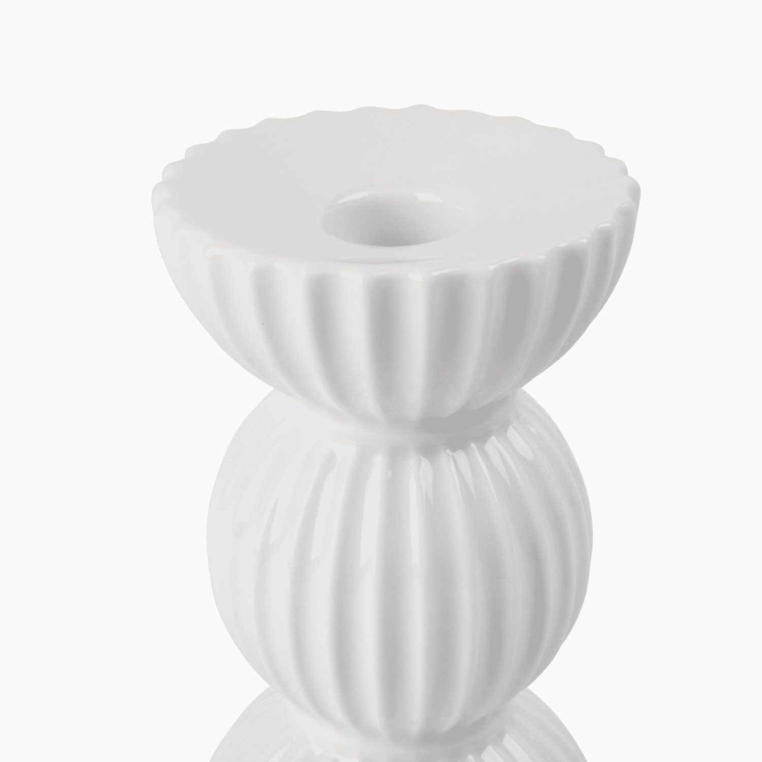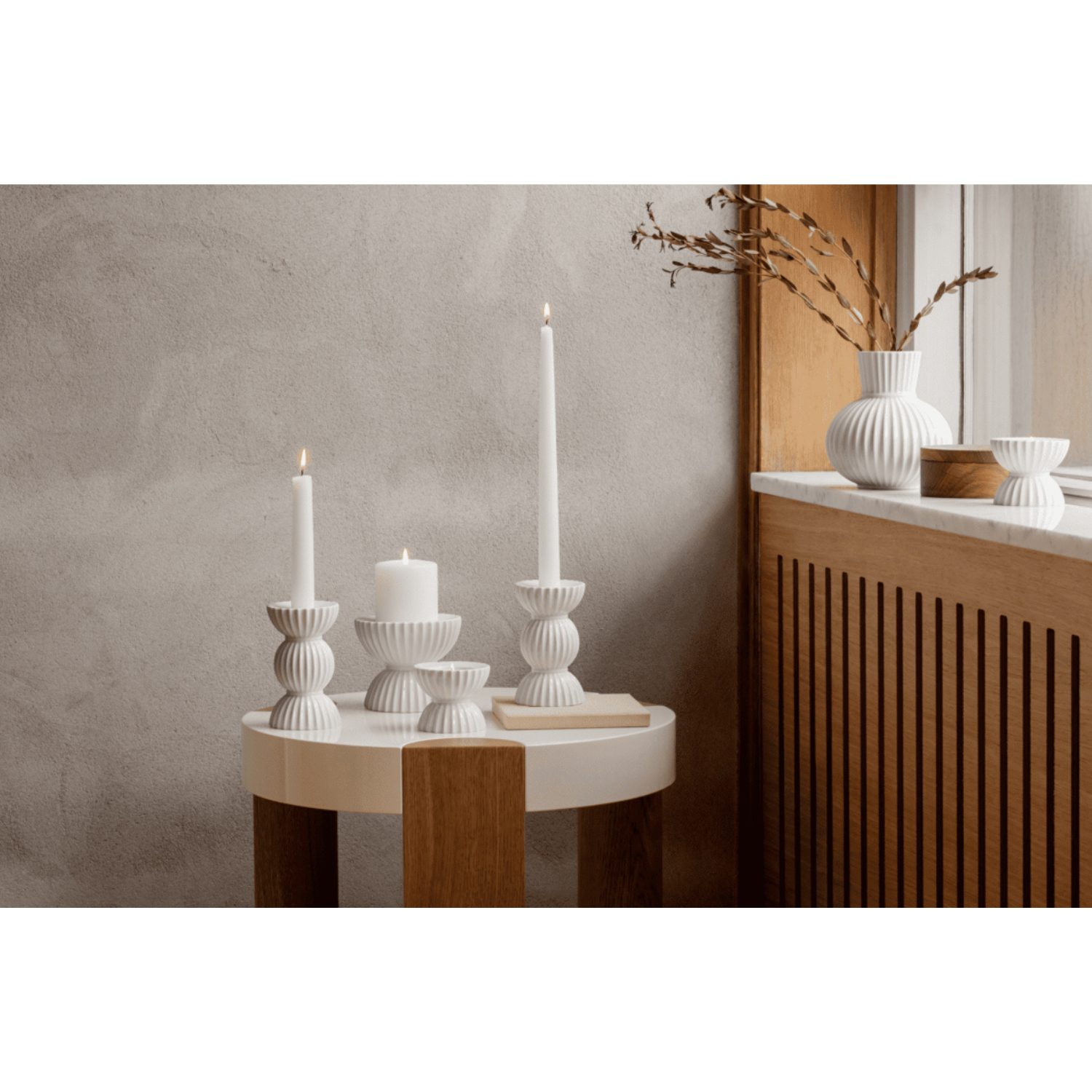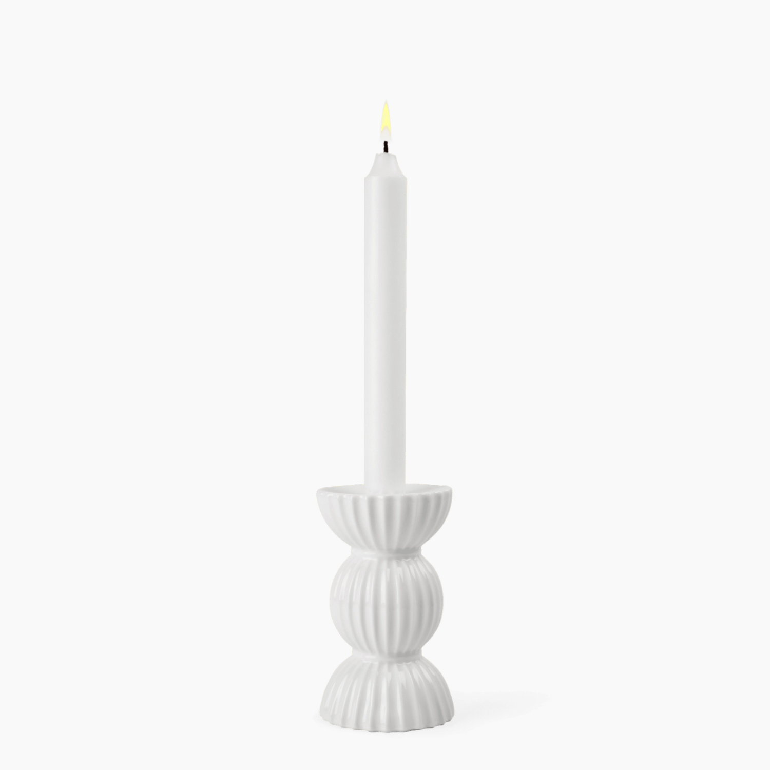 Portavelas Lyngby Tura H12,5 cm en porcelana blanca. Diseño escultórico y minimalista de Philip Bro Ludvigsen.