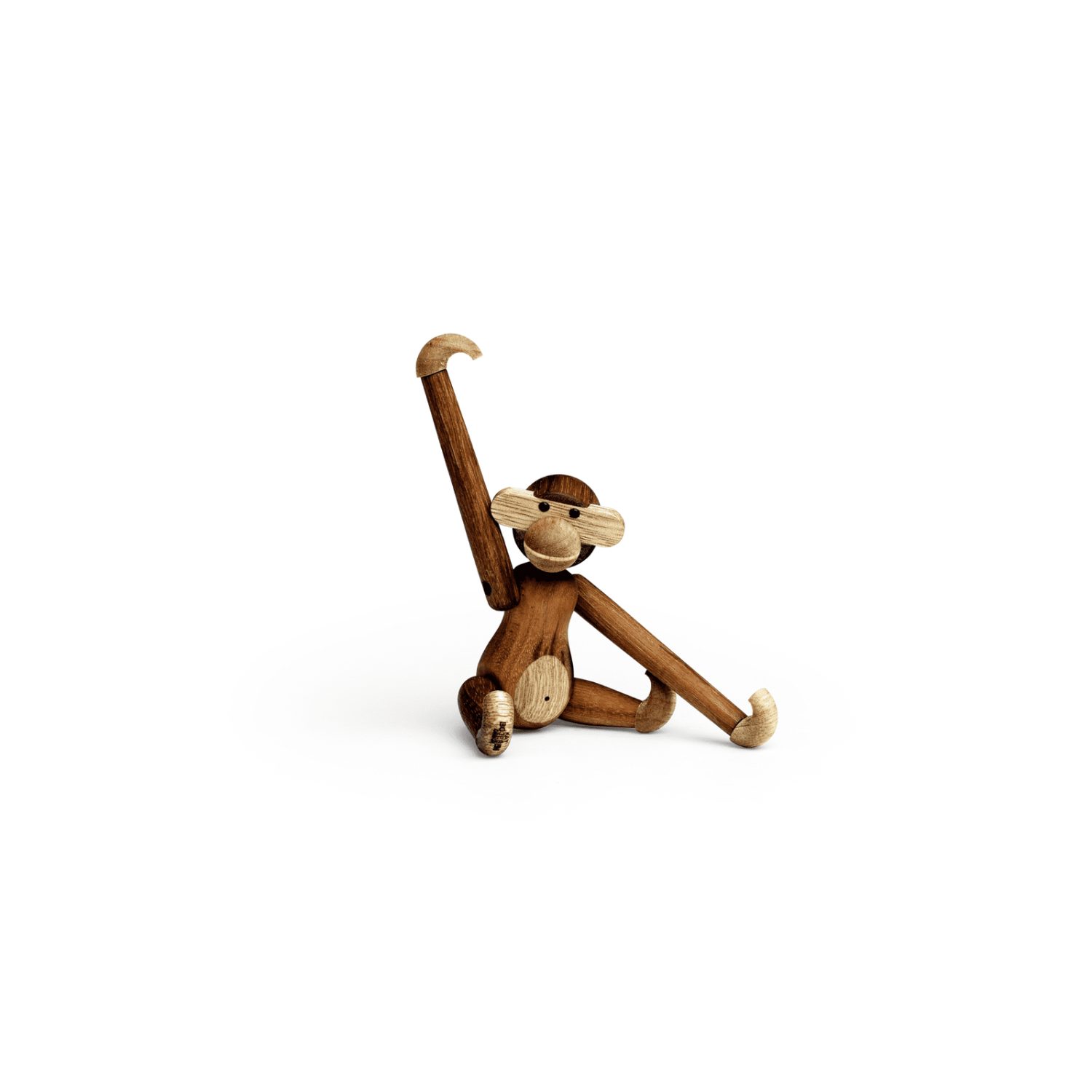 Kay Bojesen Monkey Mini en madera de teca y limba FSC®, 9,5 cm. Diseño danés icónico desde 1951: humor, calidez y carácter en una pieza atemporal.