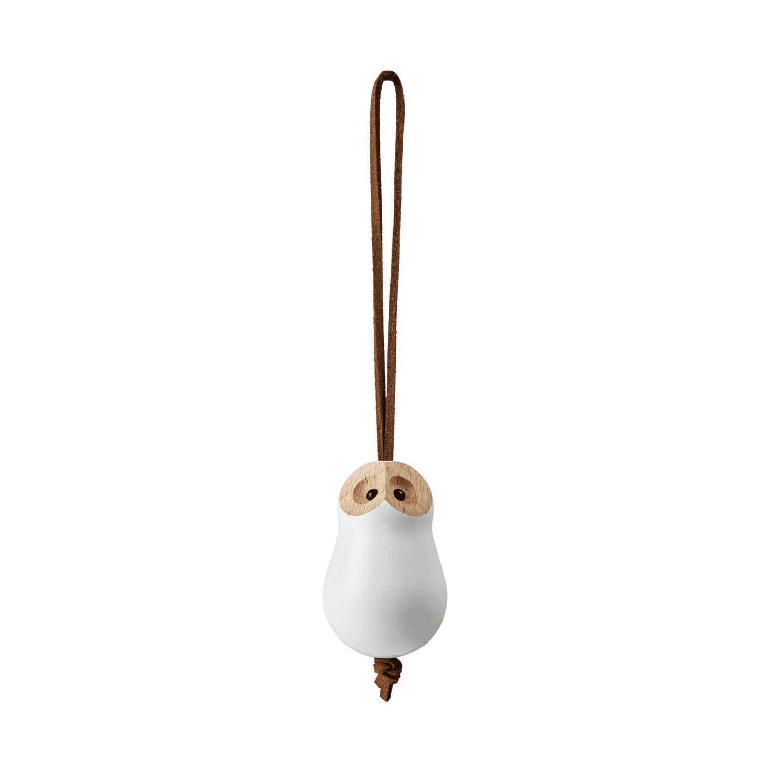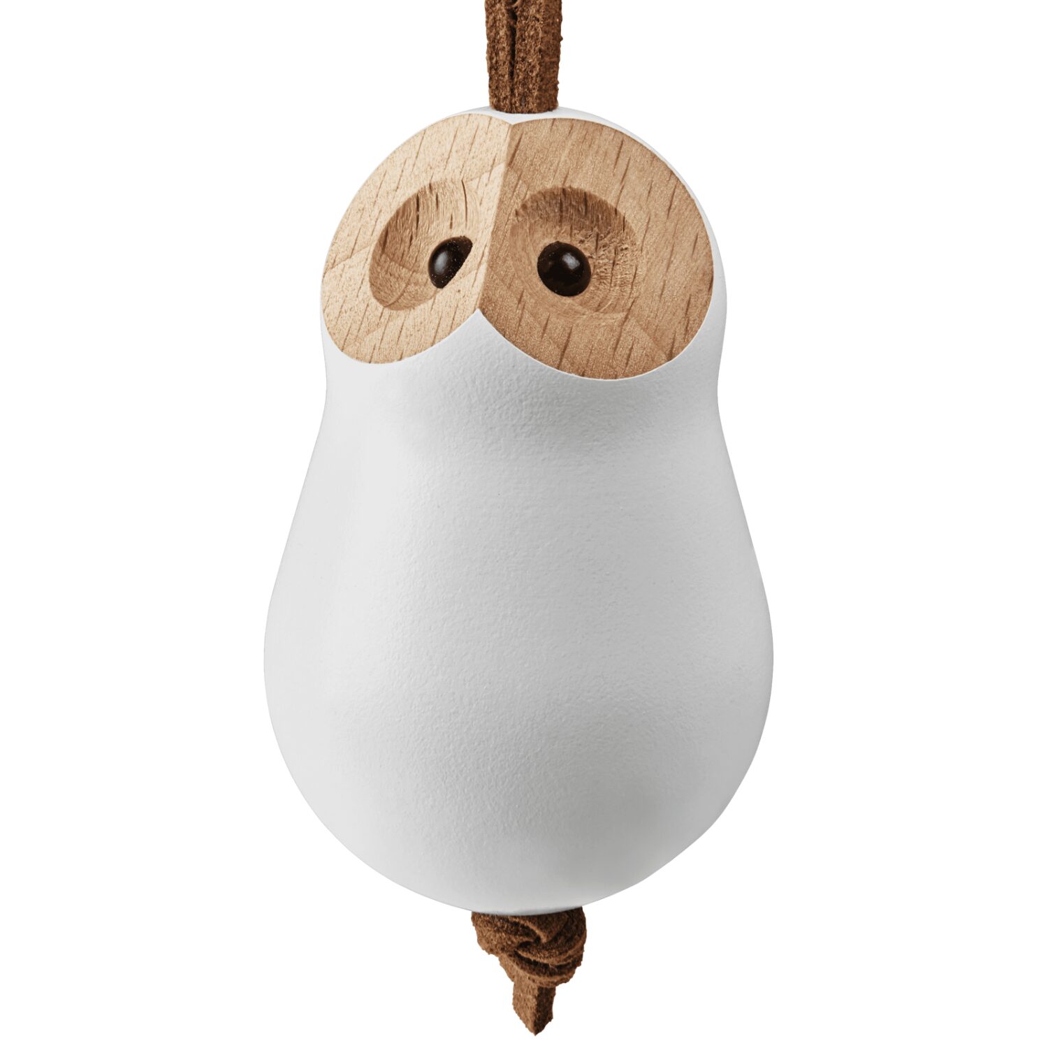 Diseñado por Tools Design, este búho de líneas suaves combina la madera natural de haya pintada con un acabado blanco brillante que refleja la serenidad de los paisajes invernales nórdicos.