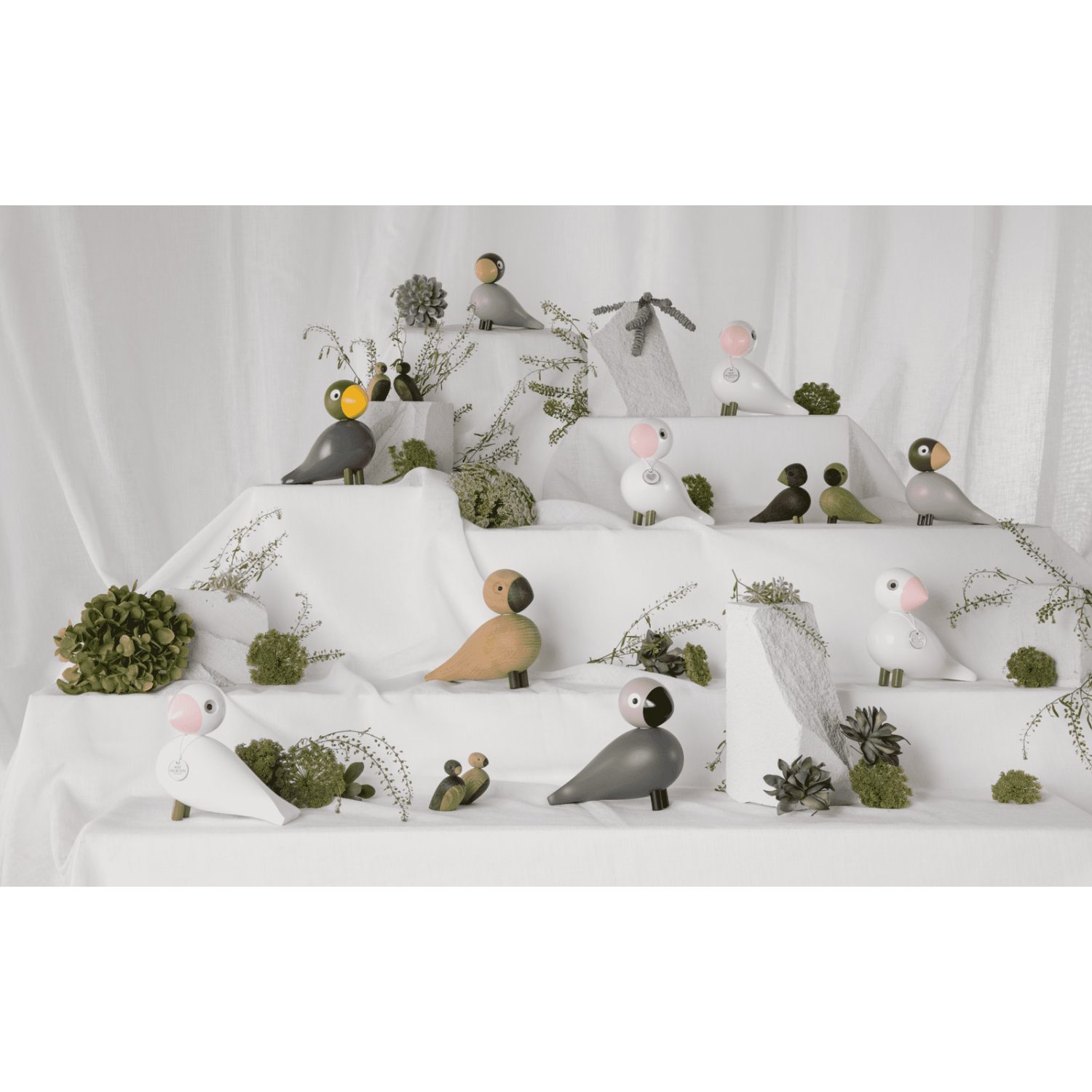 Fabricado en madera de haya pintada con certificación FSC®, el Pájaro Cantor de Amor mide 15,5 cm de altura, y ha sido creado con gran precisión y respeto por la naturaleza. Además, Kay Bojesen Denmark dona 50 coronas danesas por cada Love Songbird vendido, destinando esta aportación a proyectos solidarios que fomentan la esperanza y el amor.