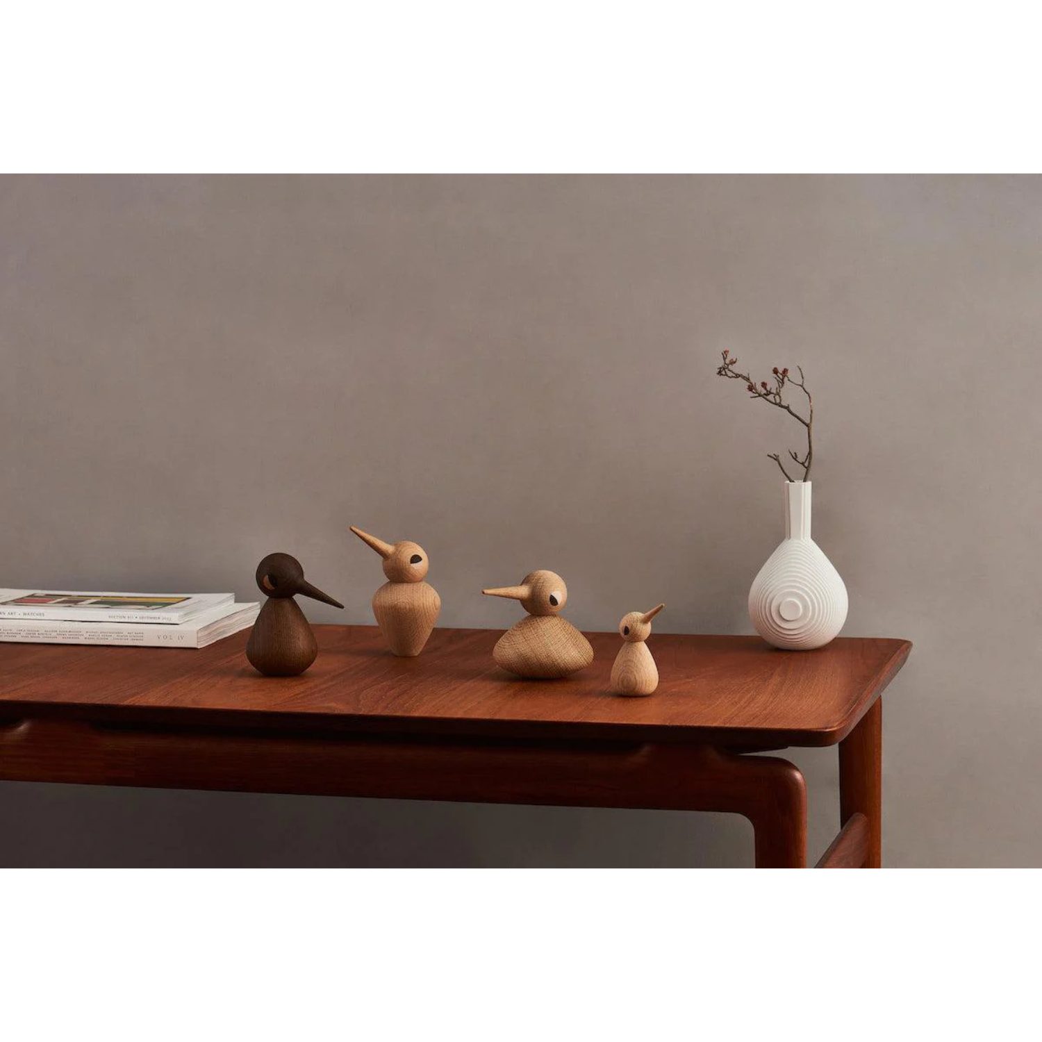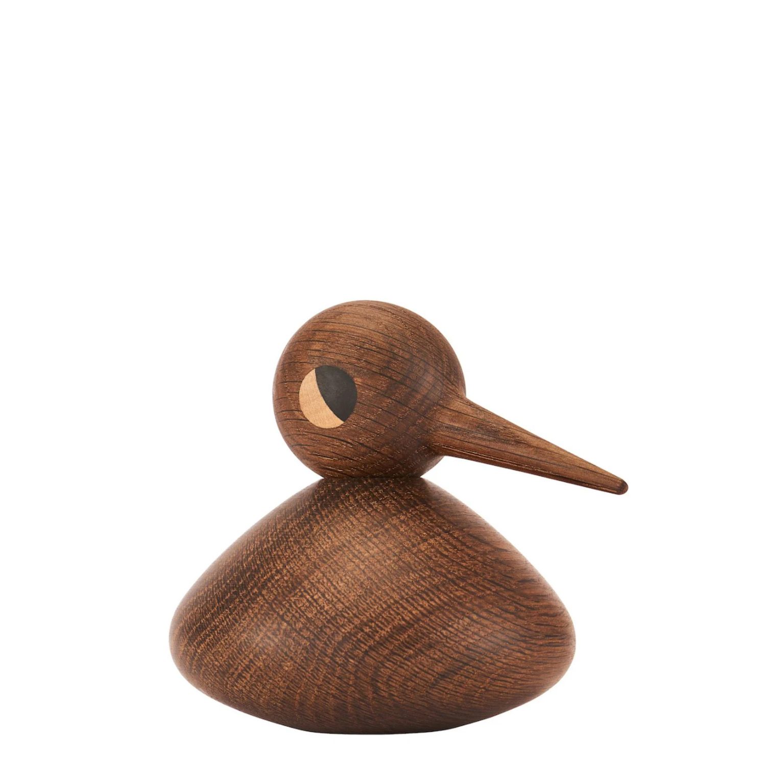 Pájaro Chubby de Kristian Vedel para Architectmade, fabricado en roble ahumado con ojos en wengué y arce. Diseño original de 1959, 13 cm de altura.