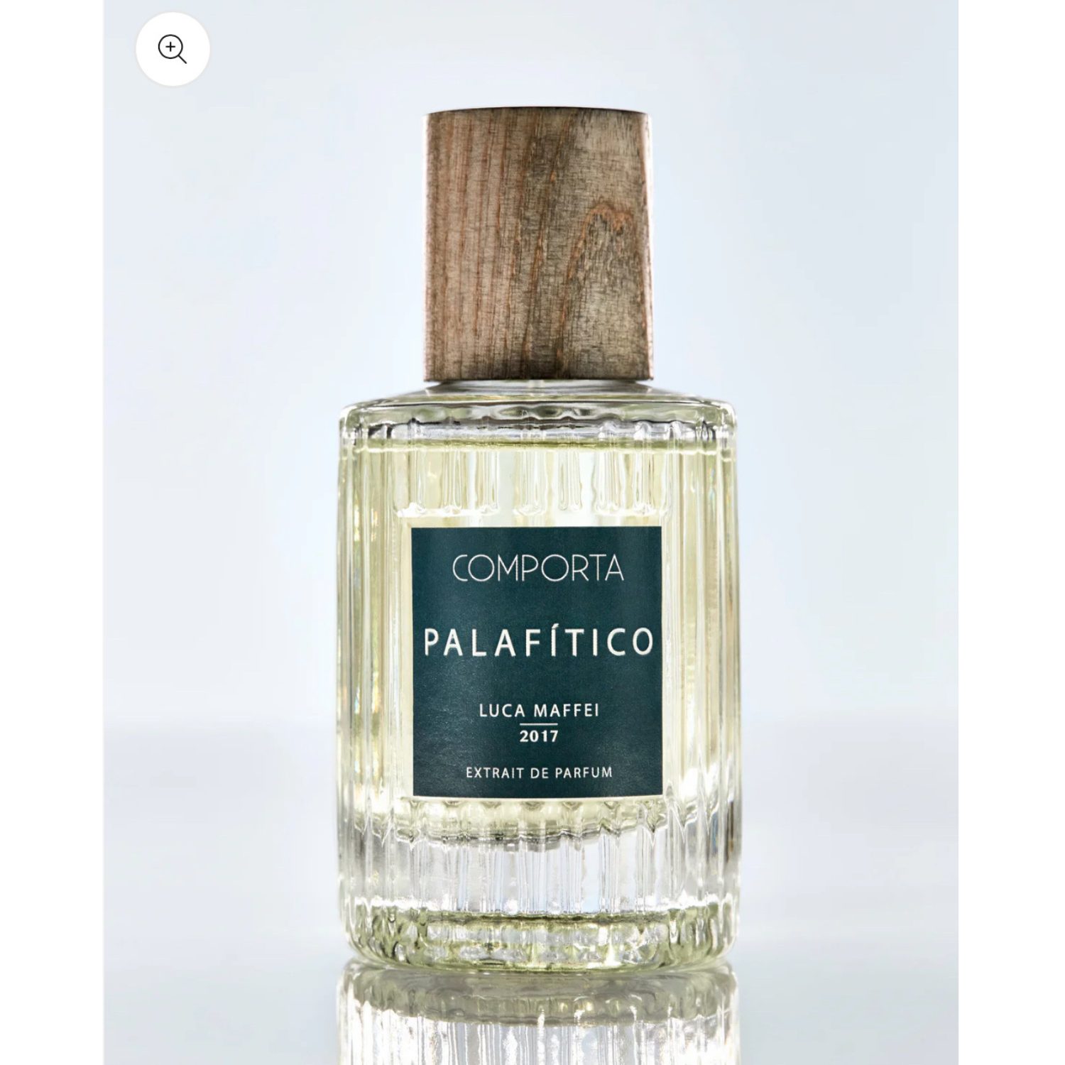 Palafítico de Comporta Perfumes es una fragancia inspirada en los antiguos palafitos de Carrasqueira, donde los pescadores construían pasarelas de madera sobre el agua salada. El perfume evoca la dureza y belleza de ese paisaje: el sol abrasador del verano, el frío y la lluvia del invierno, y la huella de la sal en la madera.
