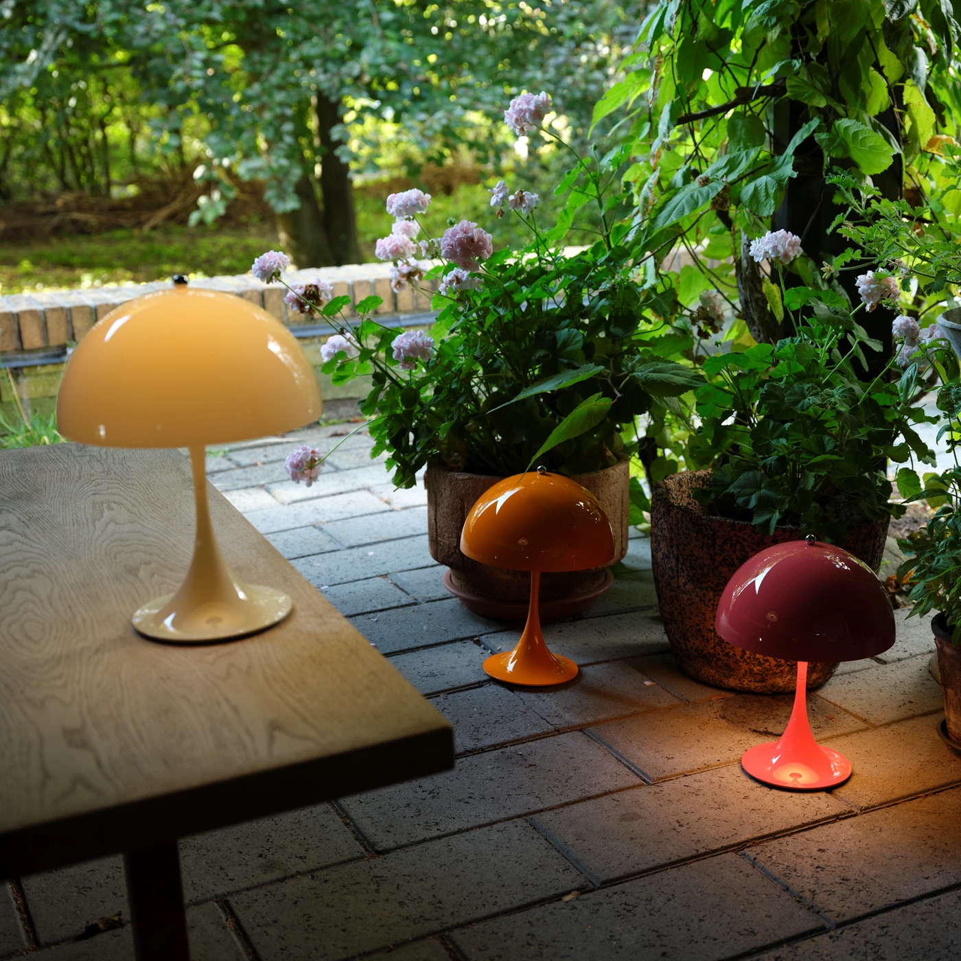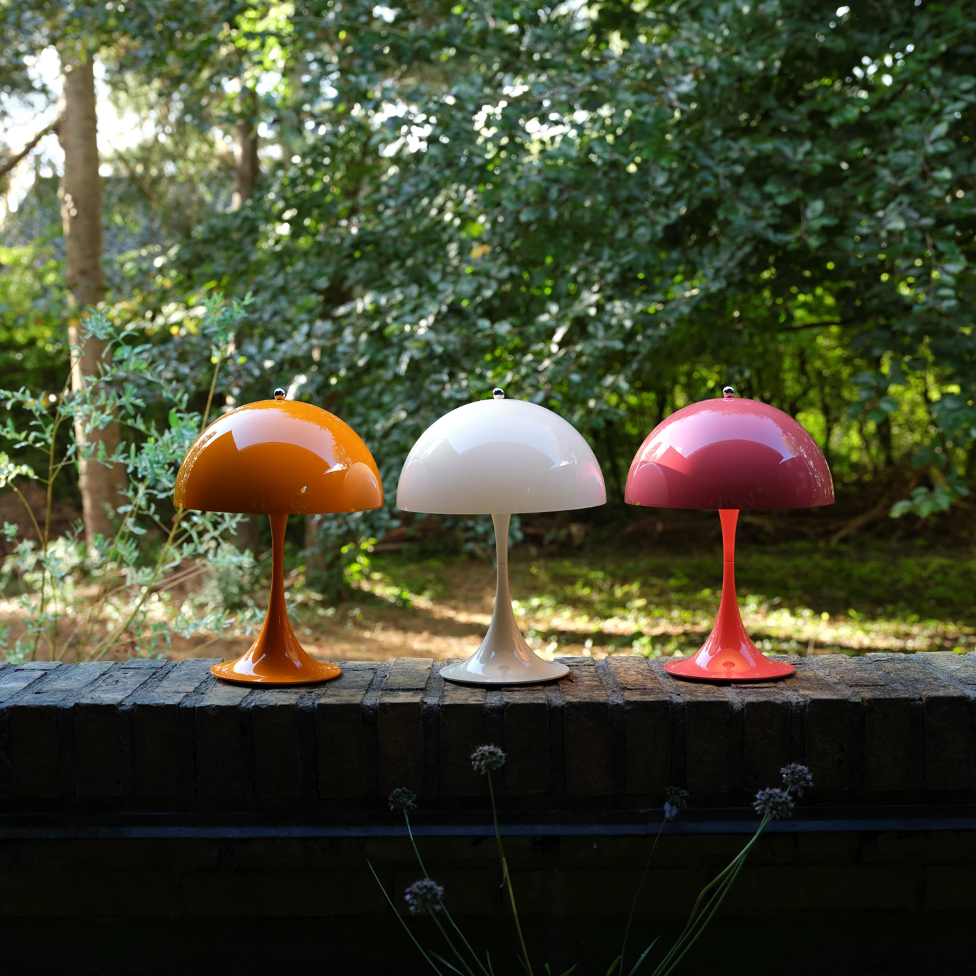 Panthella 250 Portable Opaque Coral — lámpara portátil diseñada por Verner Panton para Louis Poulsen, un icono del diseño escandinavo que combina forma, color y funcionalidad en una expresión única.