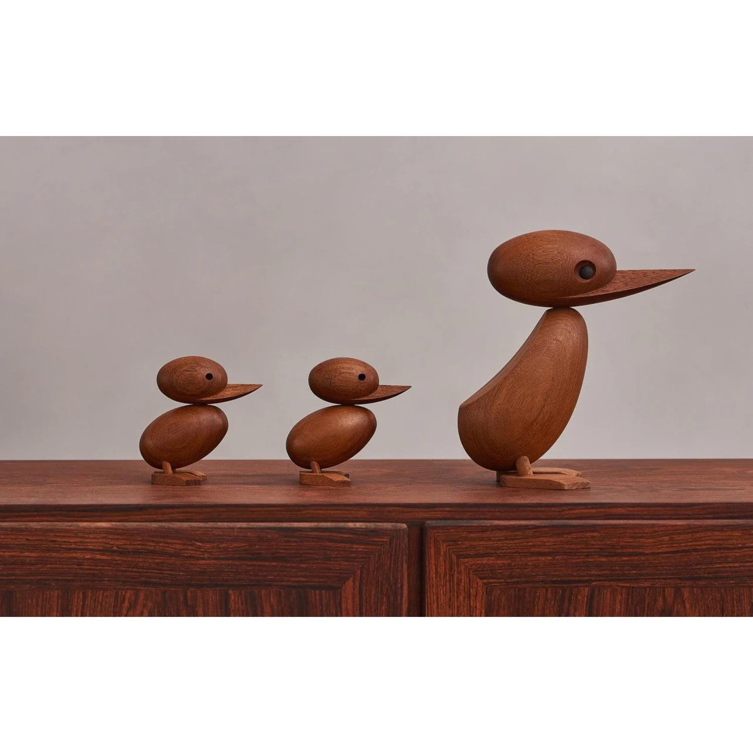 Fabricado a mano en madera maciza de teca, el Duckling destaca por su silueta depurada, su cabeza móvil y la calidez de su material natural, que hace que cada pieza sea única. Su carácter lúdico y poético lo ha convertido en un clásico del diseño danés, capaz de evocar emociones tanto en niños como en adultos.