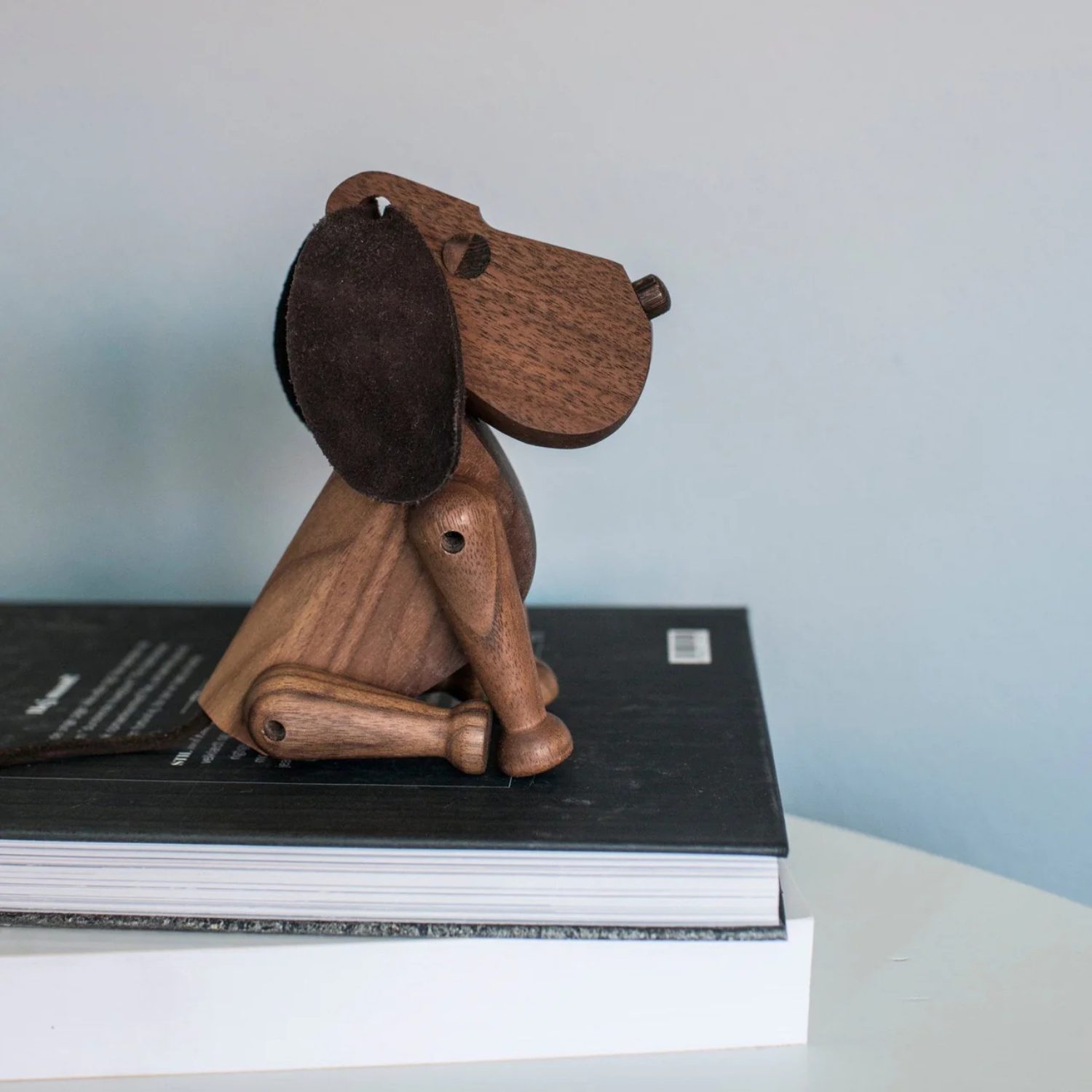 Perro Bobby de Nogal de Architectmade (1953), hecho a mano en madera de nogal y cuero, 13 cm de altura.
