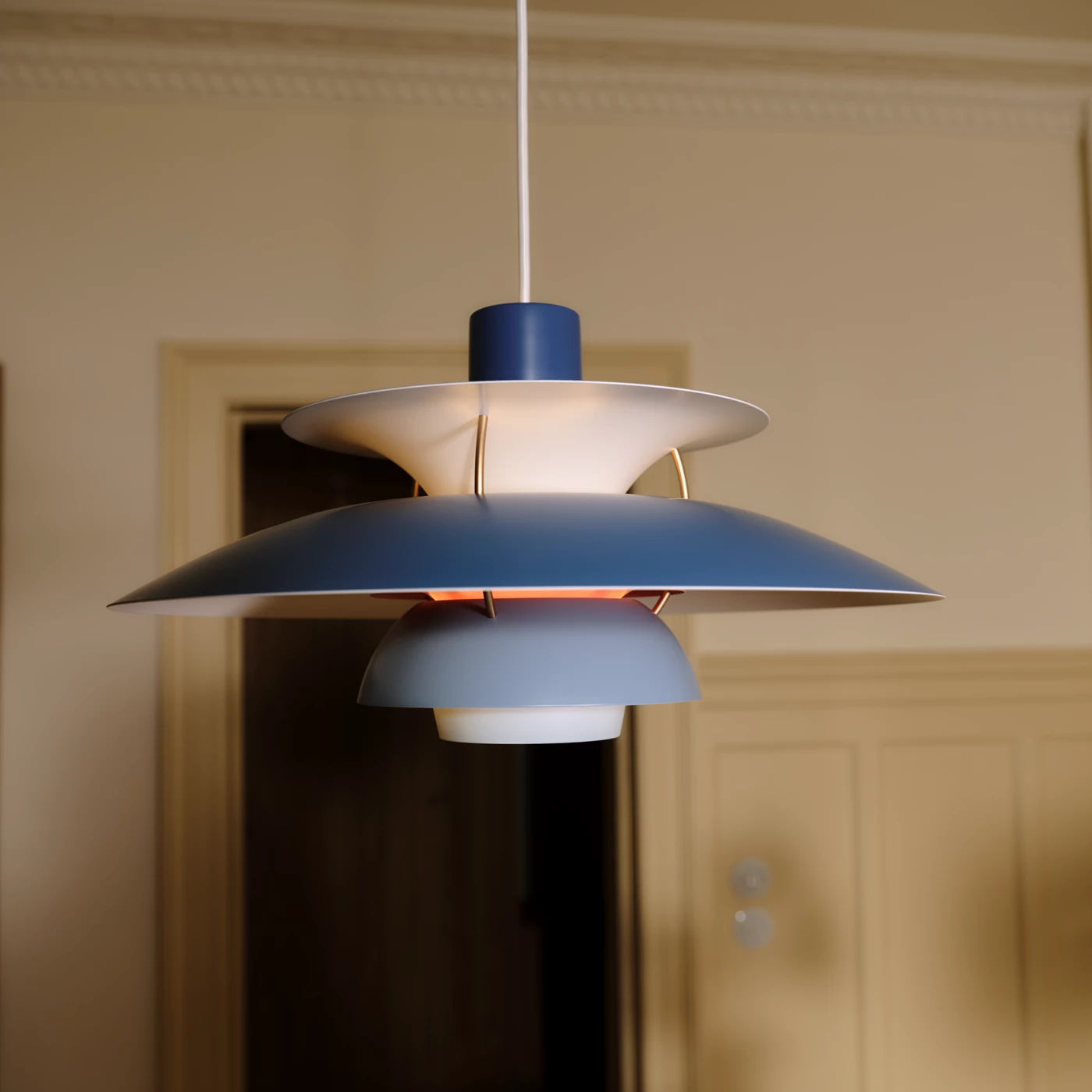 Cada matiz azul expresa una emoción, y cada pantalla refleja un tipo de luz. Esta armonía entre forma y color convierte a la PH 5 Hues of Blue Louis Poulsen en una pieza que trasciende el tiempo, iluminando con elegancia y sentido.