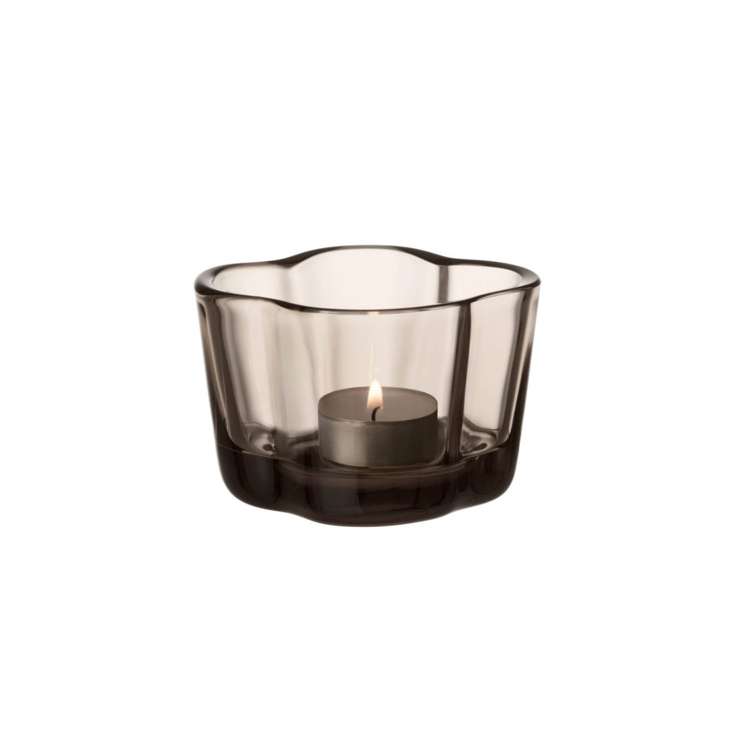 Iittala Alvar Aalto Tealight 60mm Linen – portavelas de cristal soplado a boca, con acabado cálido en tono lino. Una pieza icónica y atemporal del diseño escandinavo.