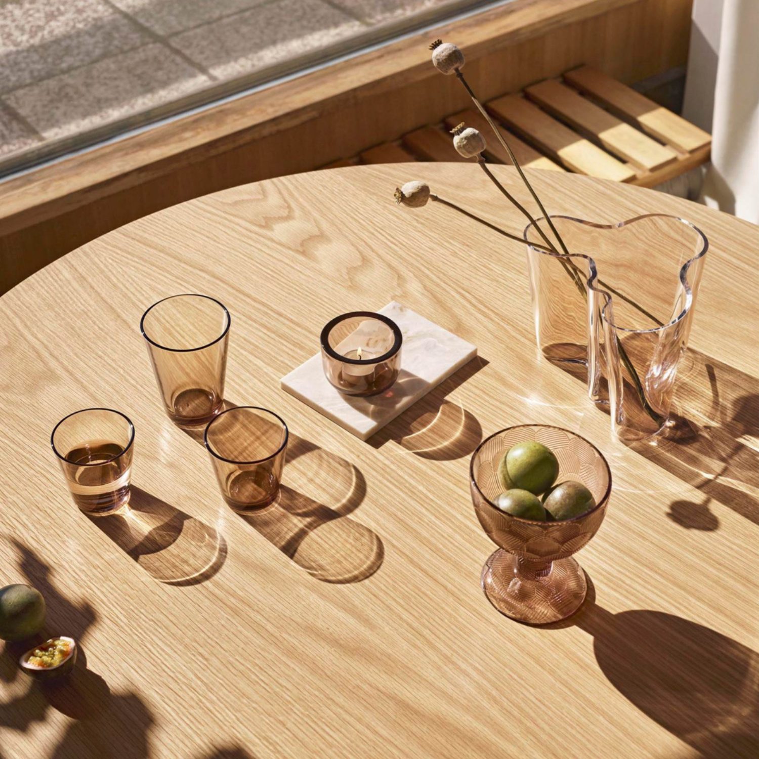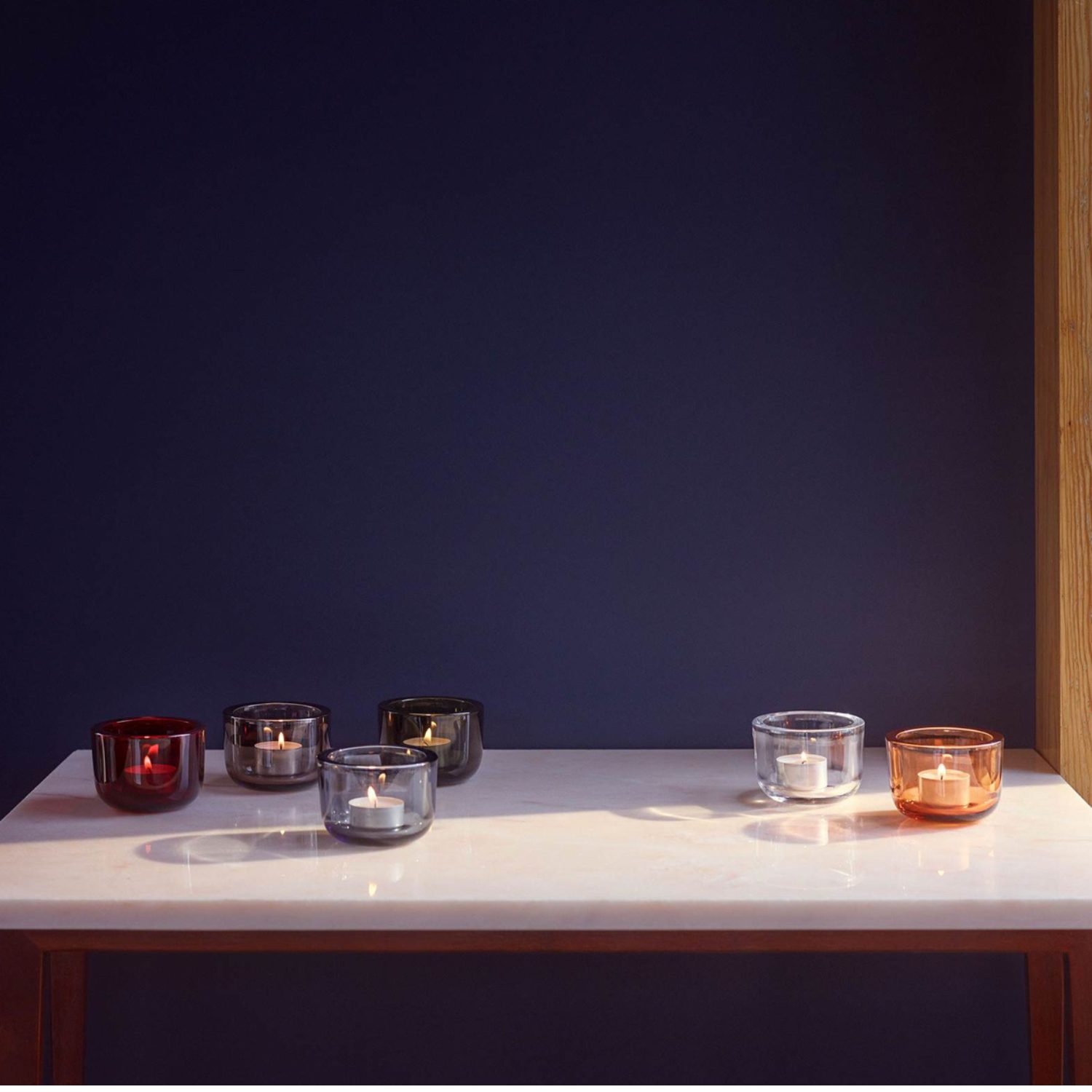 Iittala Valkea Tealight 60mm Linen, diseñado por Harri Koskinen – portavelas de cristal soplado en tono lino, minimalista y cálido. Inspirado en la tradición nórdica de iluminar con velas.