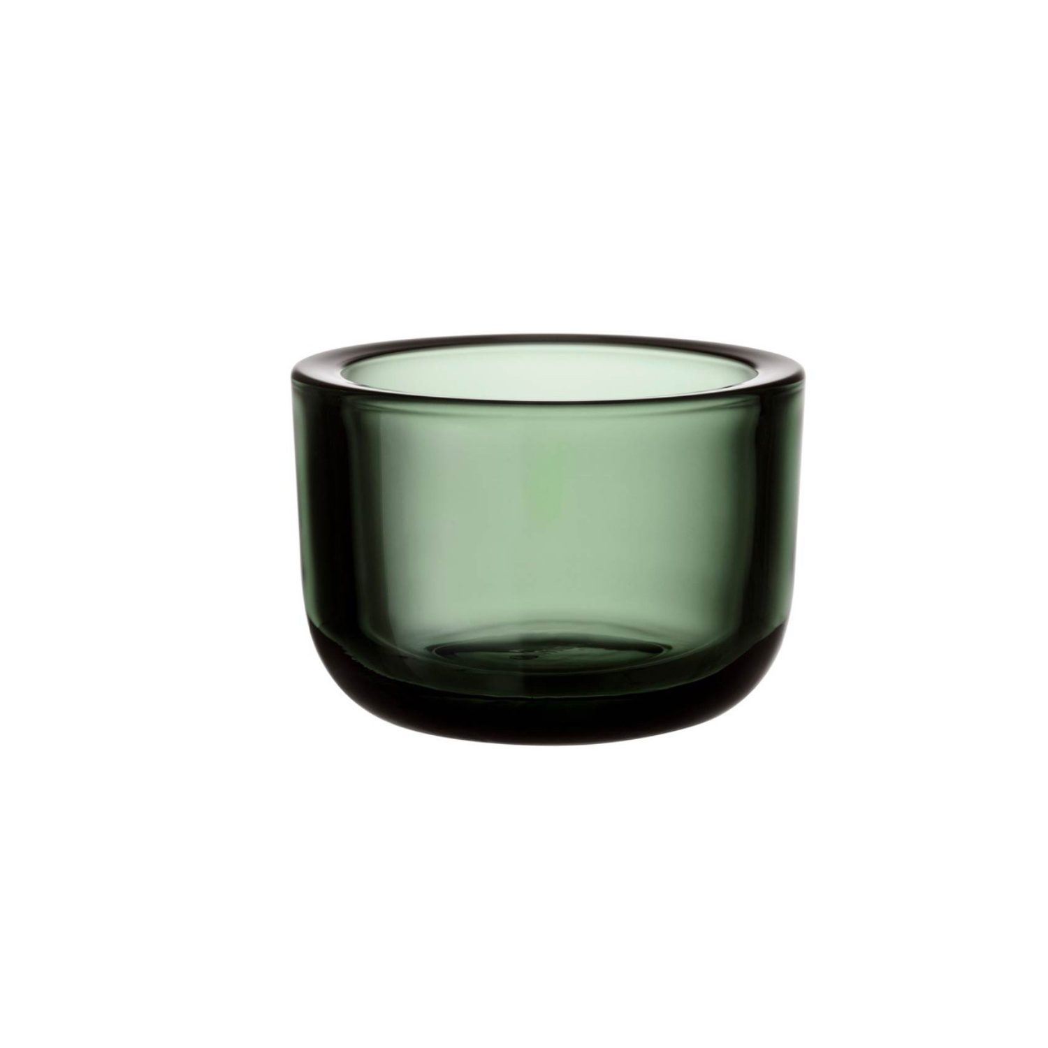 Iittala Valkea Tealight 60mm Moss Green, diseñado por Harri Koskinen – portavelas de cristal soplado en verde musgo. Una pieza minimalista que proyecta luz cálida e intimidad inspirada en la tradición nórdica.
