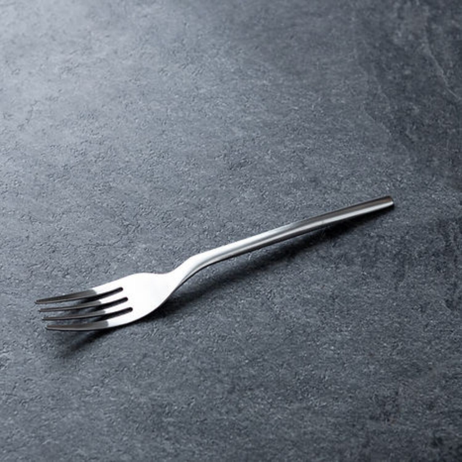 Un tenedor que eleva la experiencia gastronómica desde la pureza del acero inoxidable hasta una presencia escultórica en la mesa.