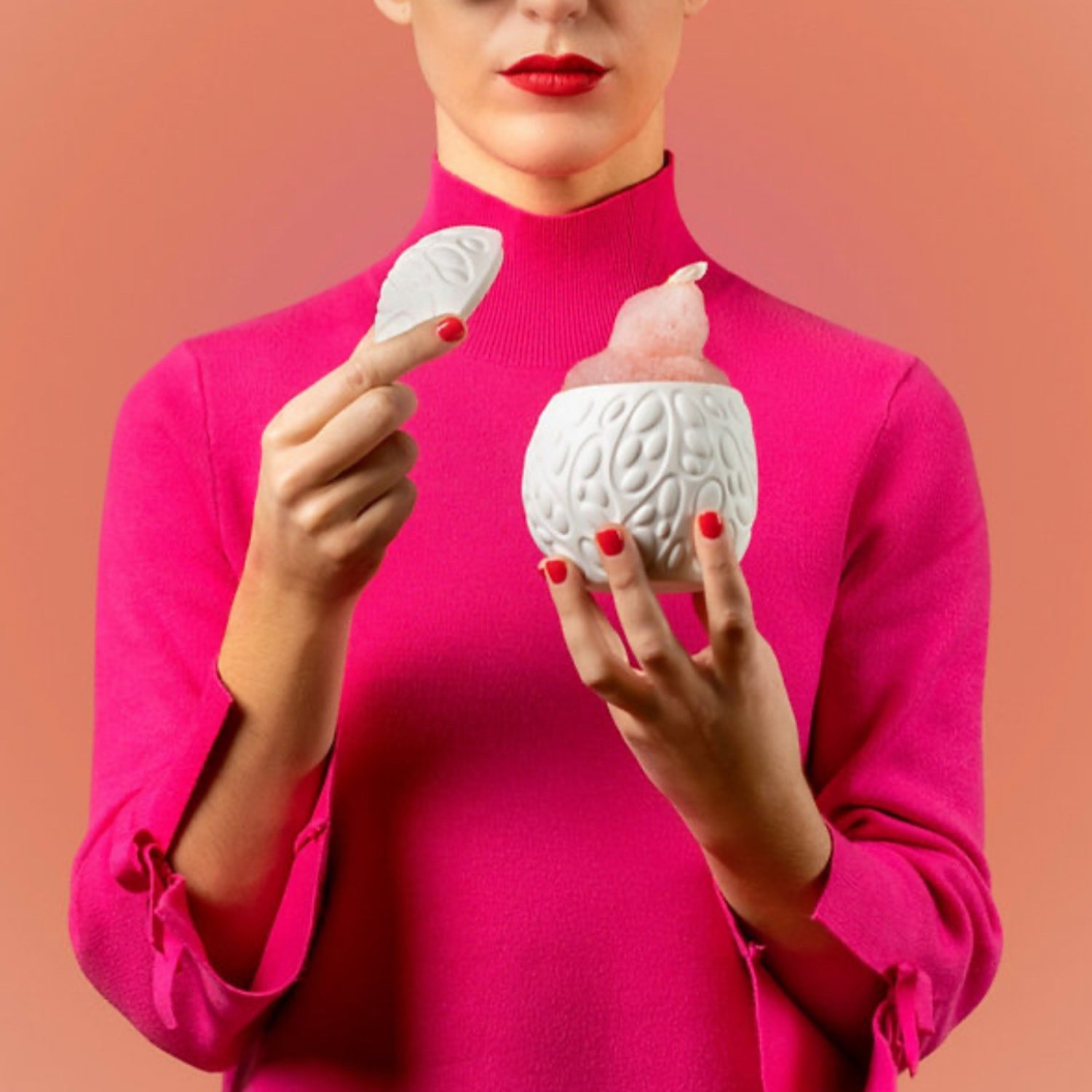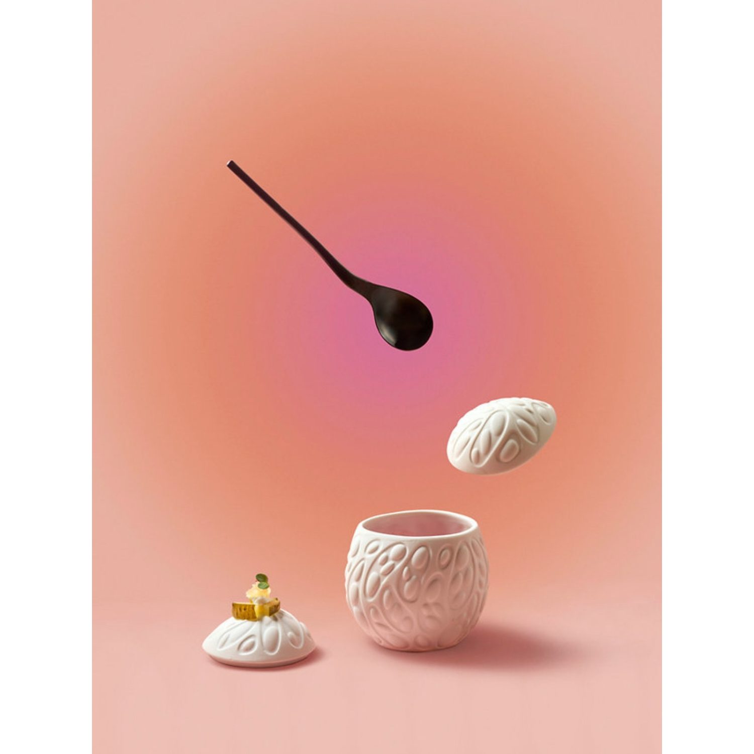 El REX EGG S (base+top) es una pieza escultórica de porcelana diseñada para sorprender en la mesa. Con su forma ovoide y contemporánea, esta pieza (9,5 × 8,5 × 11 cm · 300 ml) combina un exterior en porcelana mate (biscuit) con un interior esmaltado, creando un contraste elegante y funcional.