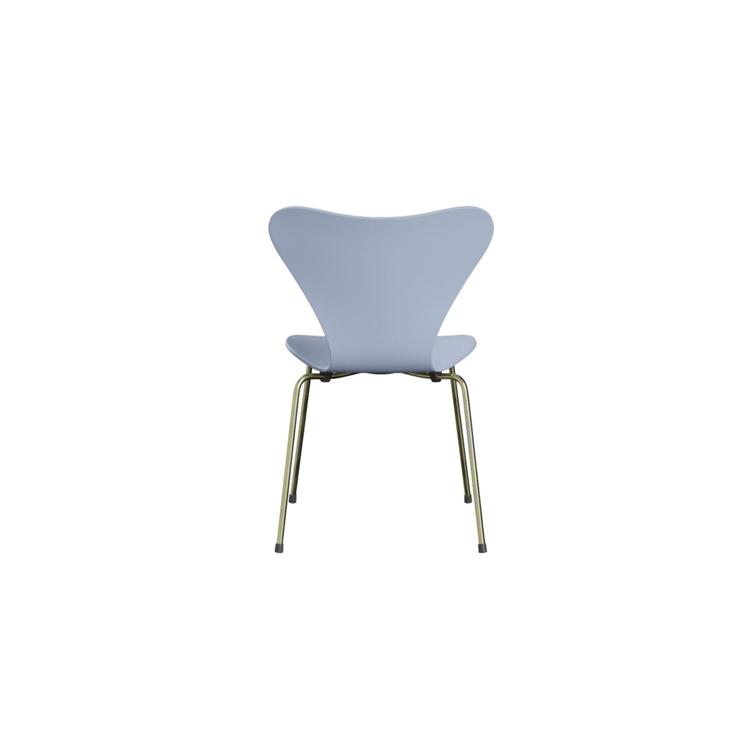 Edición aniversario del modelo 3107, con asiento en chapa moldeada azul claro y patas de acero cromado.