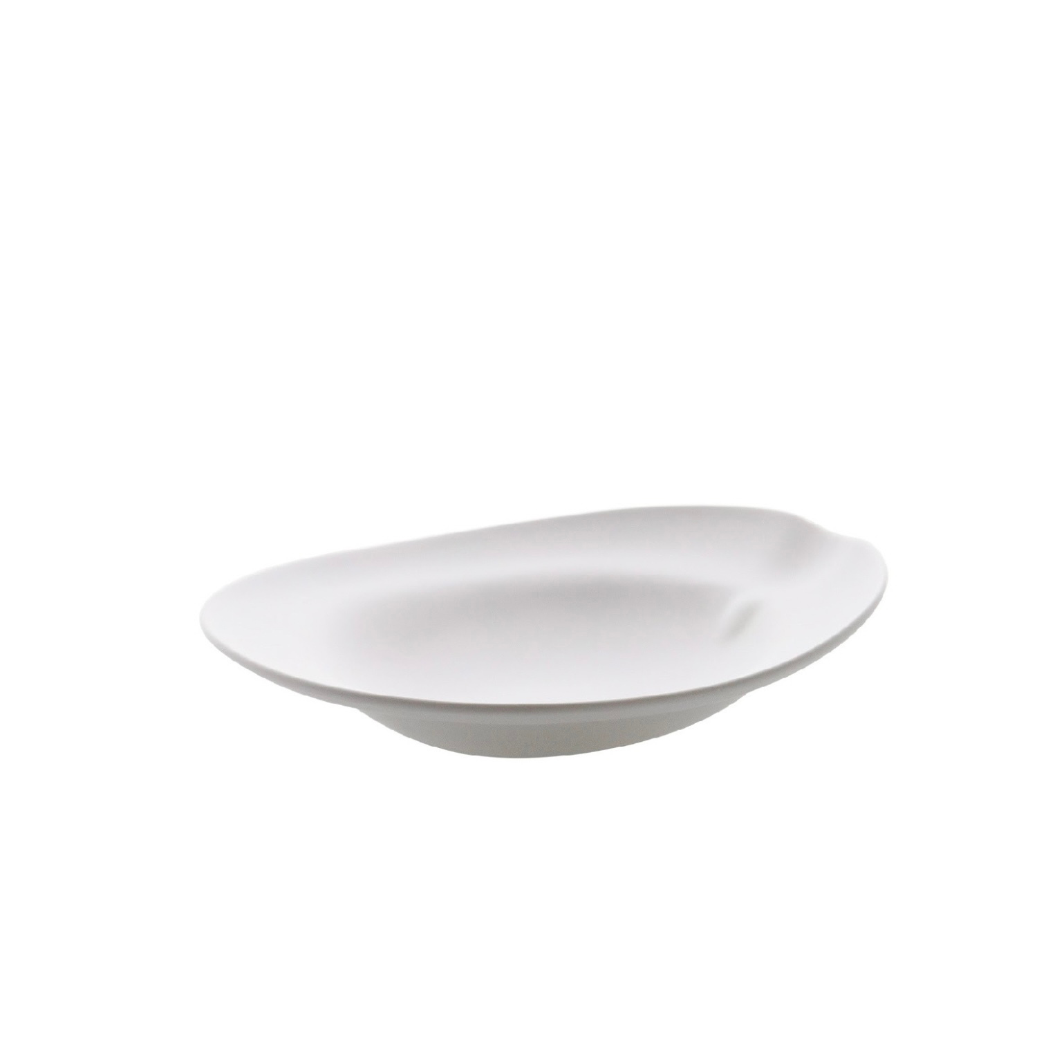 Fabricado en porcelana blanca mate biscuit (sin esmaltar), combina sofisticación y pureza, convirtiéndose en una pieza versátil y elegante para la mesa contemporánea.