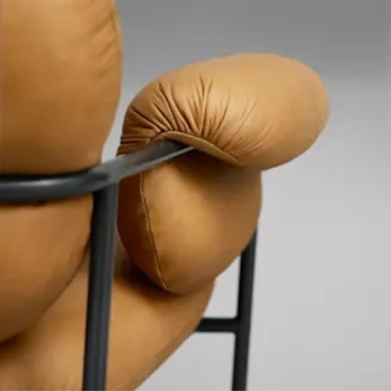 Sillón Bollo de Andreas Engesvik para Fogia, en piel Vintage Cognac y estructura metálica en RAL 9005. Generosos cojines que envuelven, aportando un confort excepcional con líneas modernas y sofisticadas.