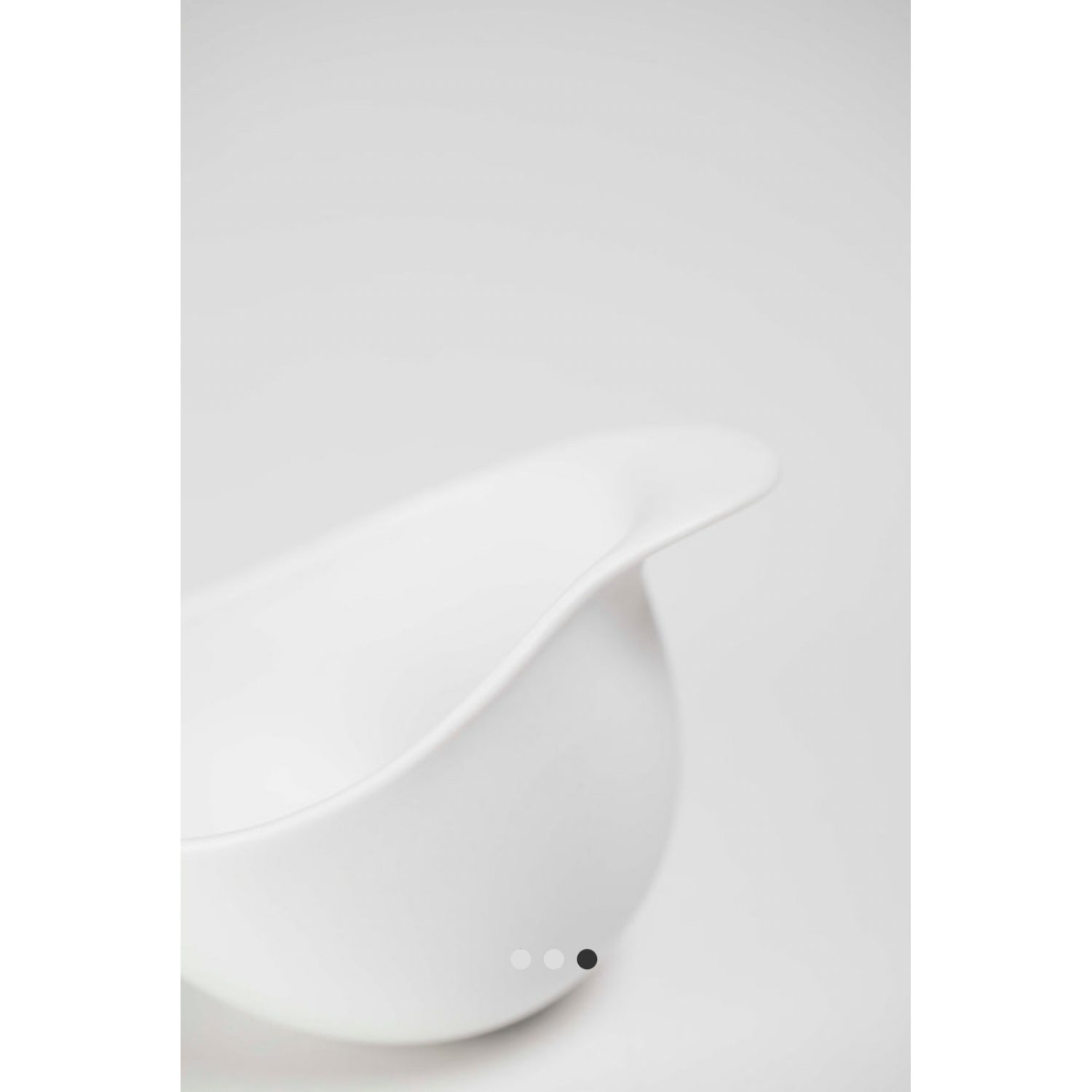 Realizado íntegramente en porcelana blanca mate biscuit (sin esmaltar), aporta sobriedad y elegancia, convirtiéndose en un elemento versátil para la mesa contemporánea.