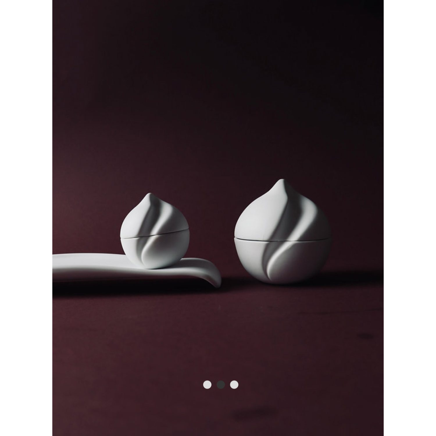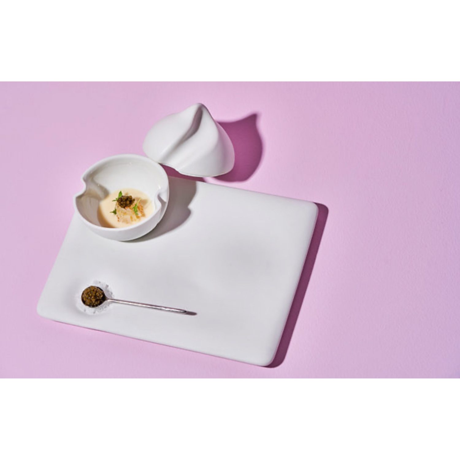 Con exterior en porcelana blanca mate y un interior esmaltado, esta pieza combina sofisticación estética con funcionalidad, siendo ideal para degustaciones, postres o presentaciones originales.