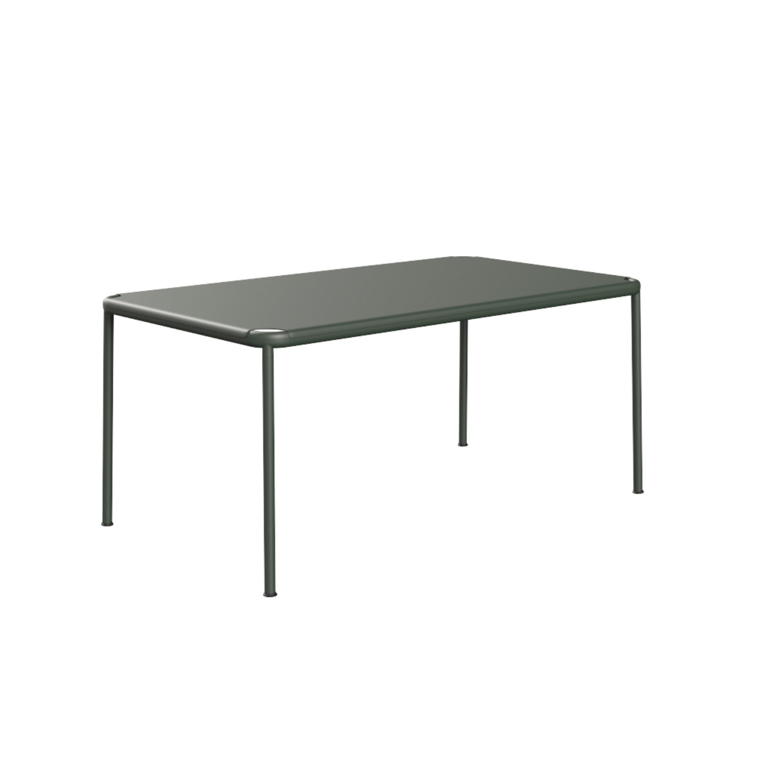 Mesa de exterior en aluminio con acabado Hunter Green – Textured, resistente, estable y de líneas limpias.